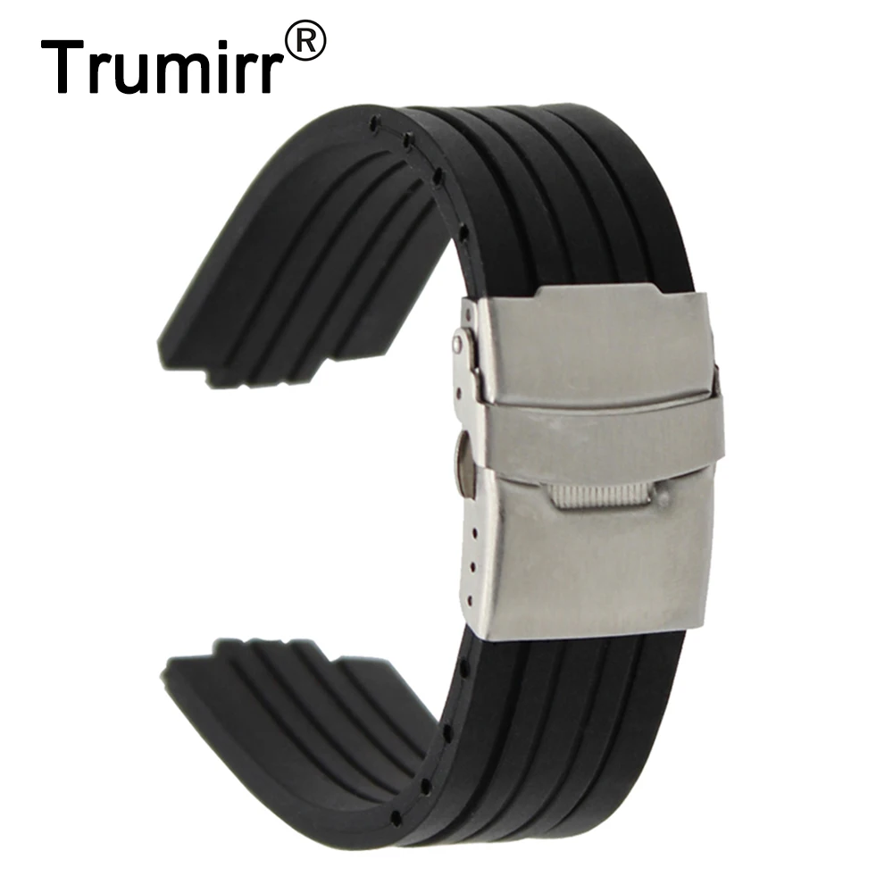 Ремешок силиконовый для часов с выпуклым отверстием, резиновый браслет из нержавеющей стали с застежкой, с пружинной штангой, 12 мм x 22 мм