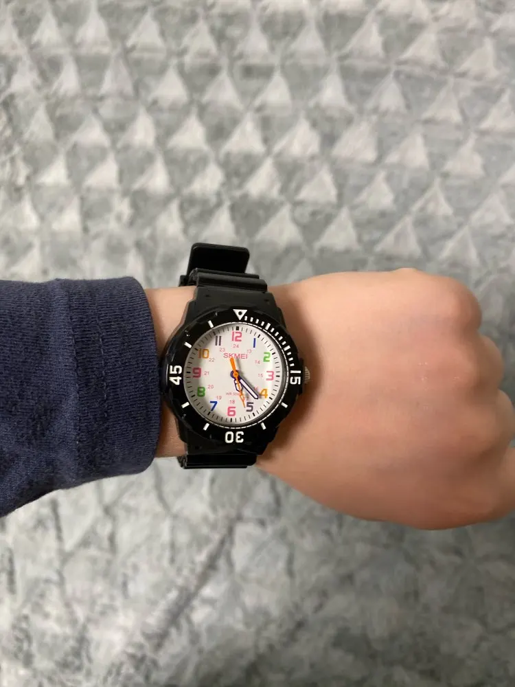 Он имеет все отмеченные часы, что очень помогает научить детей знать часы, у него также есть циферблат, чтобы знать каждые 15 минут.