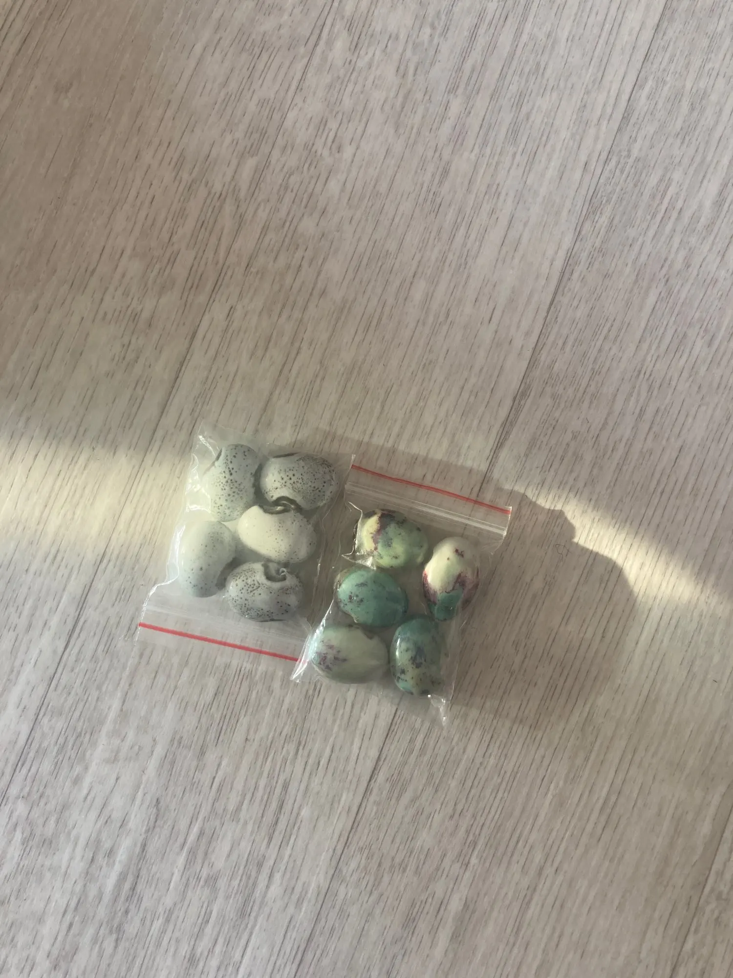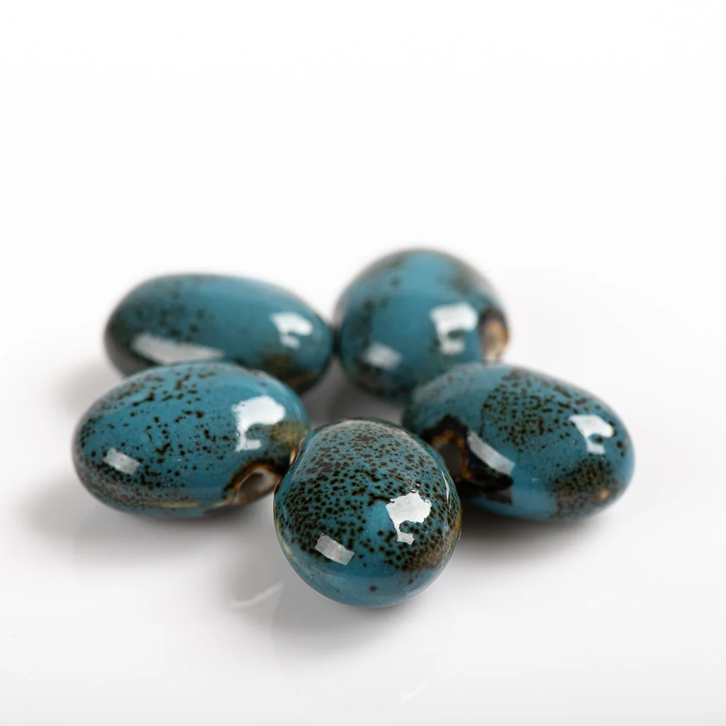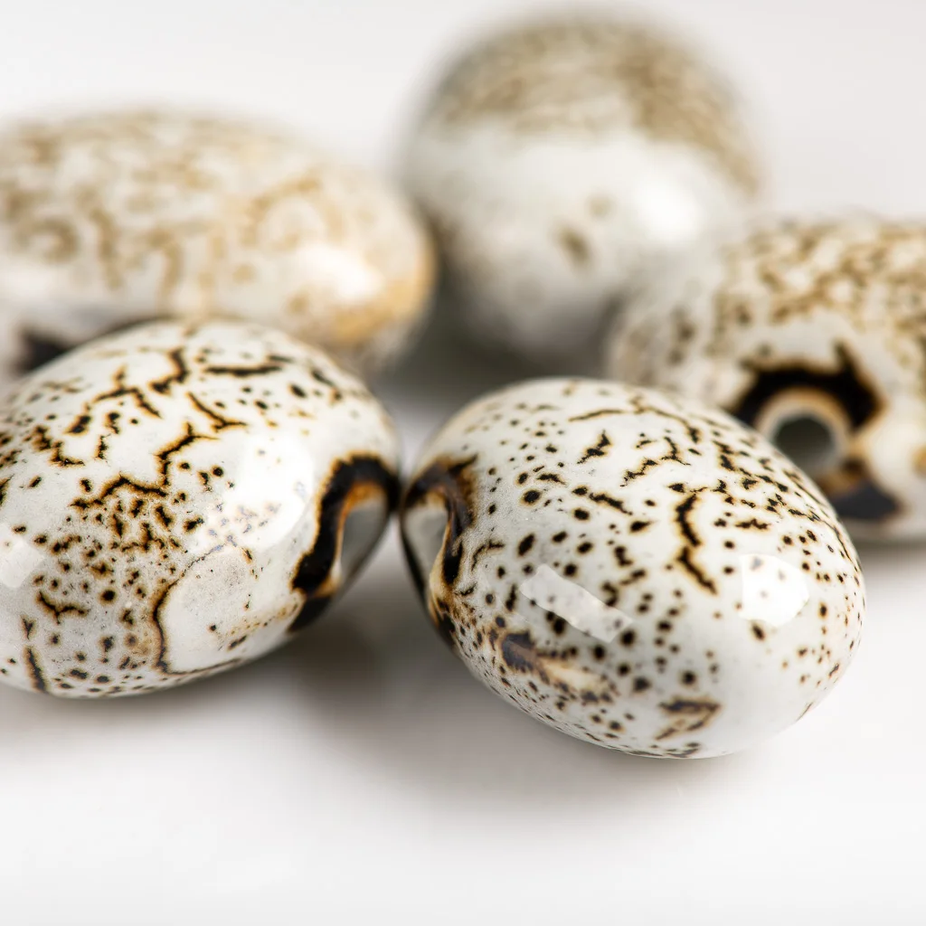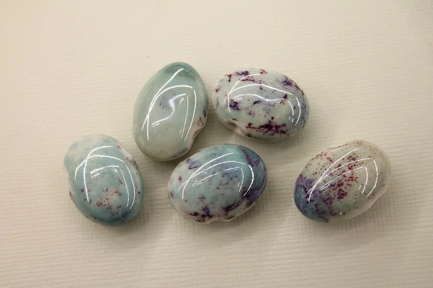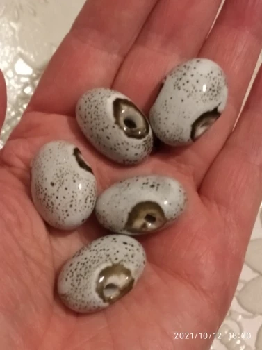 Заказала 31 позиций бусин, все бусины великолепны, очень красивы. В некоторых позициях встречаются бусинки с трещинками, очевидно они возникли при изготовлении бусин, поскольку трещины залиты глазурью. Оценку не снижаю, поскольку они очень красивы, я довольна приобретением.