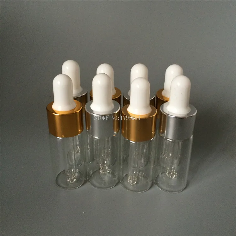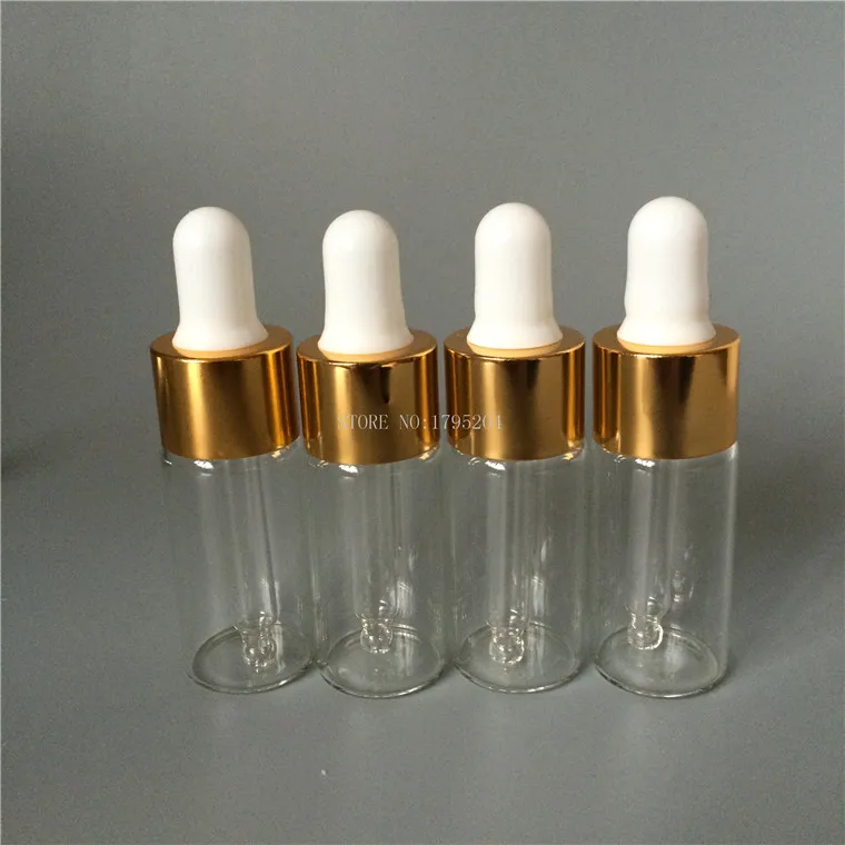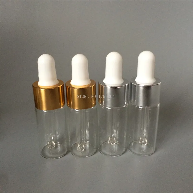 Стеклянная бутылка-капельница 10 шт.лот 10 млСС, прозрачная бутылка с золотой и серебряной крышкой, пустые эфирные масла для духов