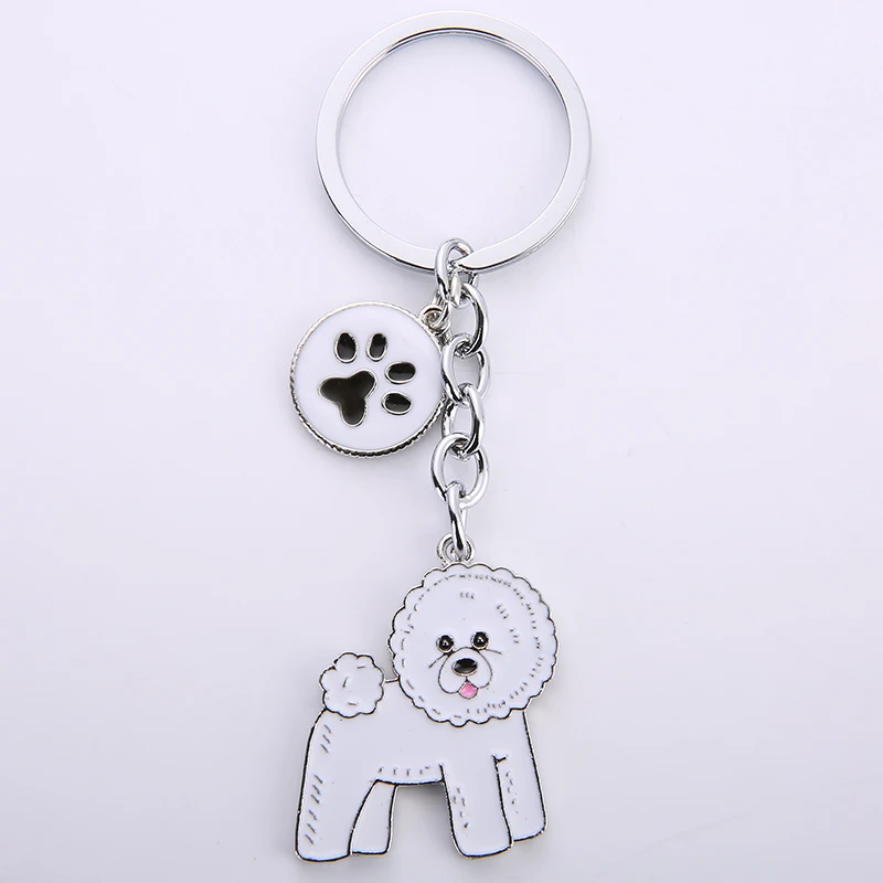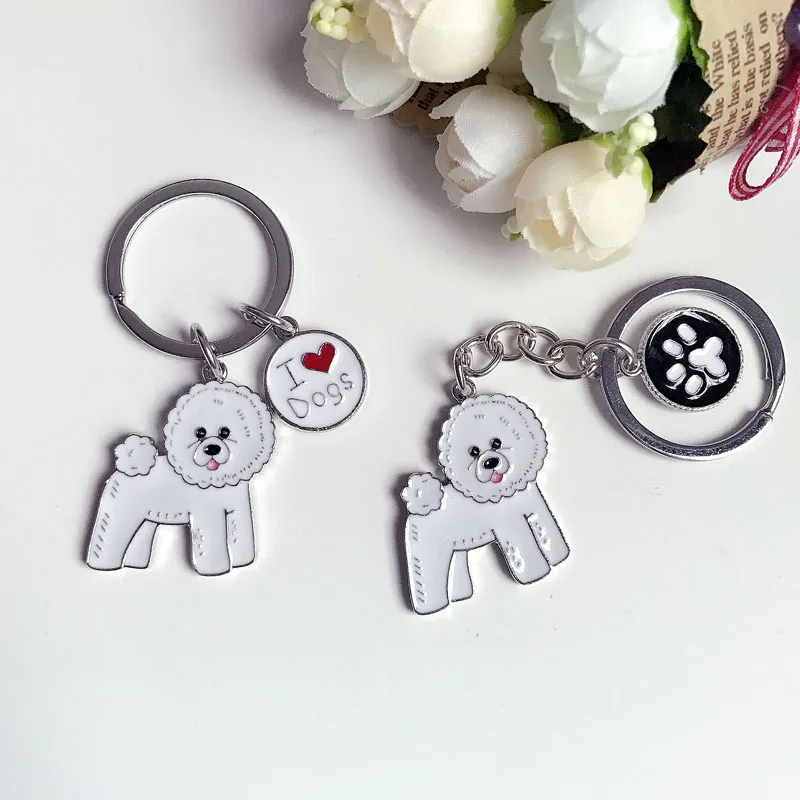 Мультяшный брелок бишон фризе, милый брелок для ключей с животными,...