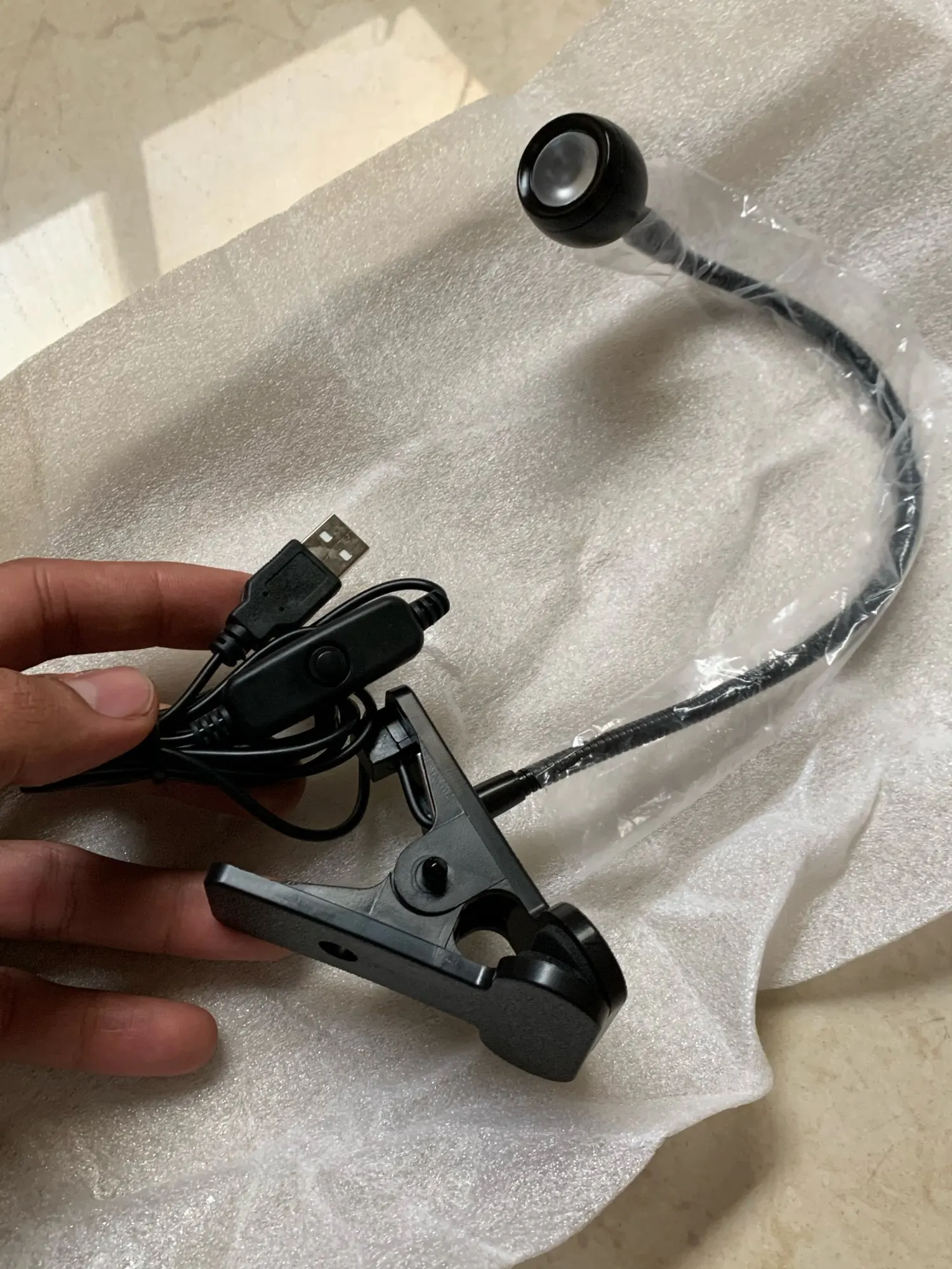 Доставка быстрая . Лампа прикольная. Малюсенькая , а луч яркий , как раз для чтения в кровати.