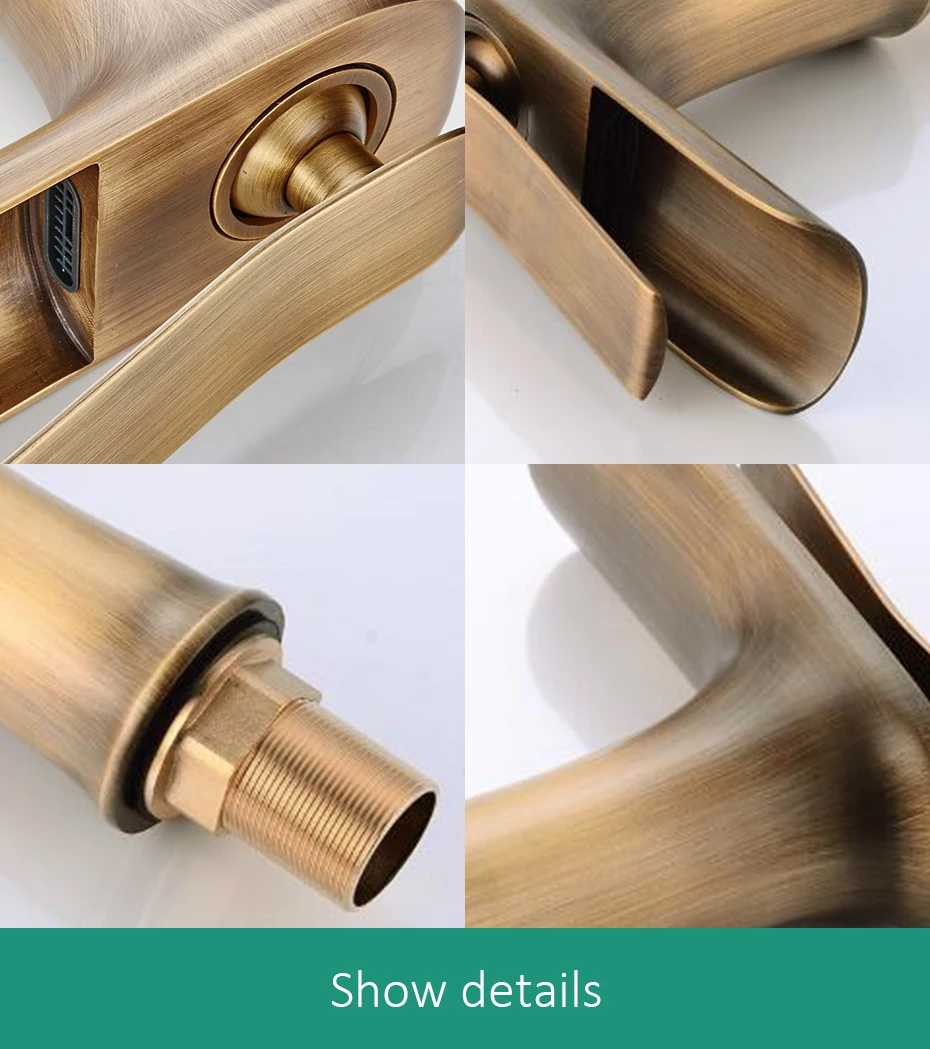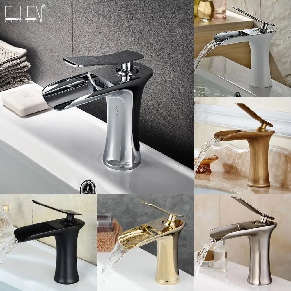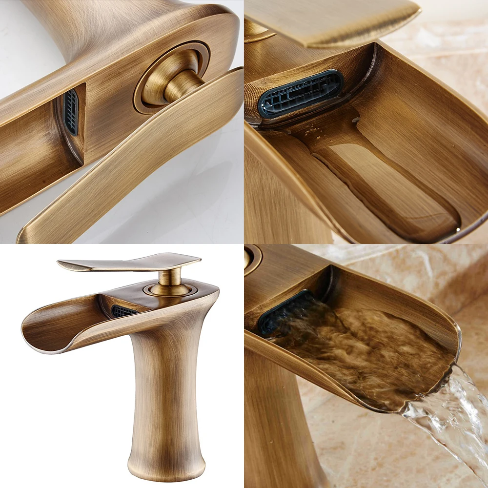 Античный бронзовый смеситель-водопад ELF100 для ванной комнаты, кран для раковины с горячей и холодной водой, черная щетка, никелевый смеситель для воды