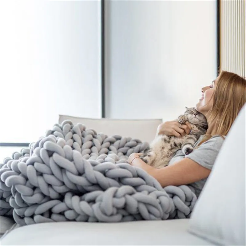 500 г ручное вязание, наполненное ядром марлевая полоска, толстая пряжа, разноцветное вязаное Хлопковое одеяло, шапка, шарф, свитер, теплое гнездо для домашних животных OHHIO
