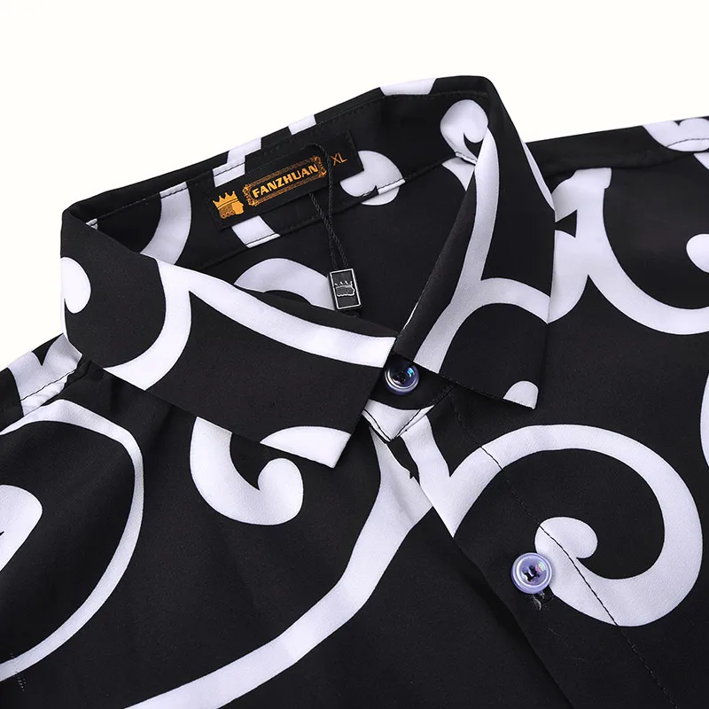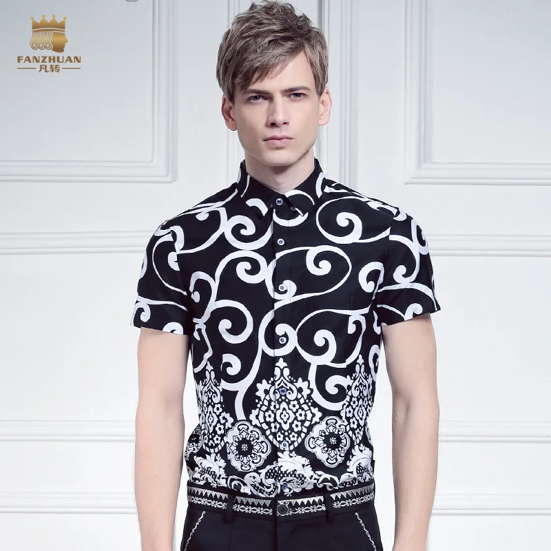 Мужская хлопковая рубашка fanzhuan, повседневная Облегающая рубашка с короткими рукавами и принтом травы, черного и белого цвета, 612051