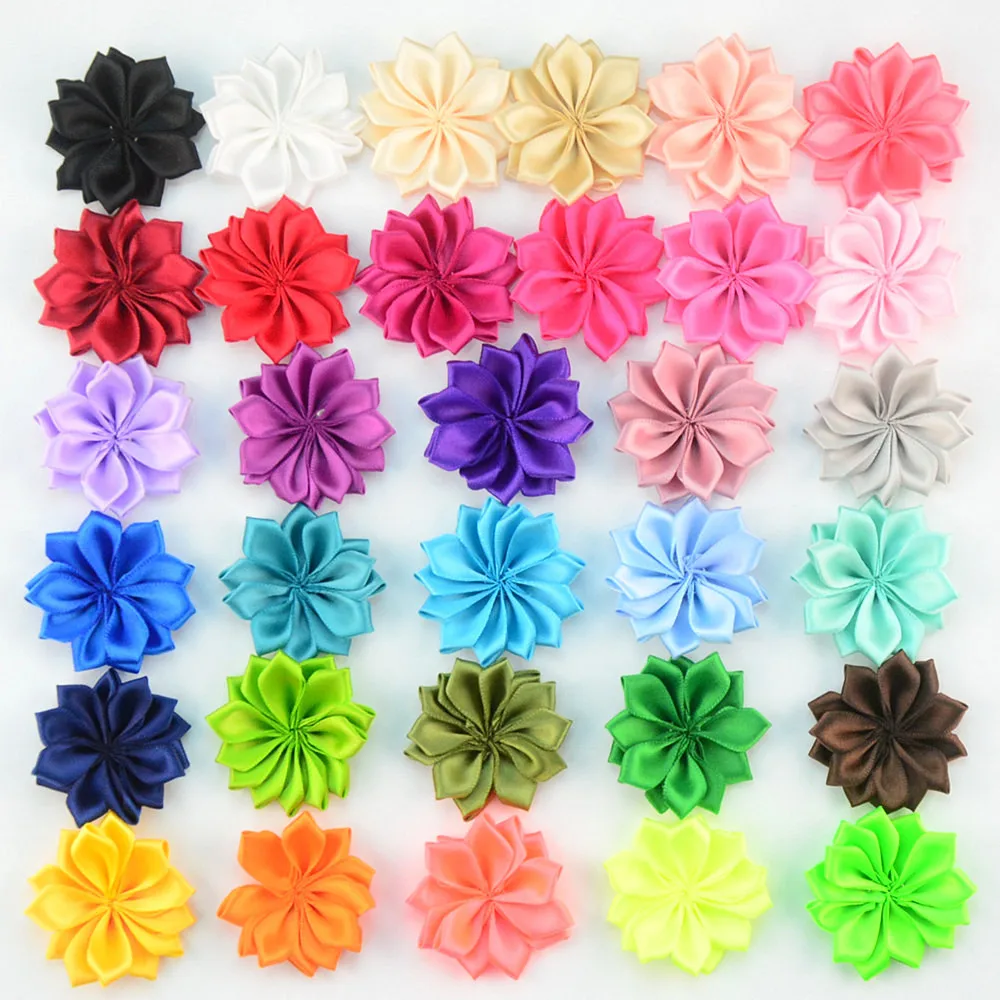 160 шт.лот, 4,5 см маленькая атласная лента цветы-многослойный цветок-атласный цветок для DIY аксессуары для волос
