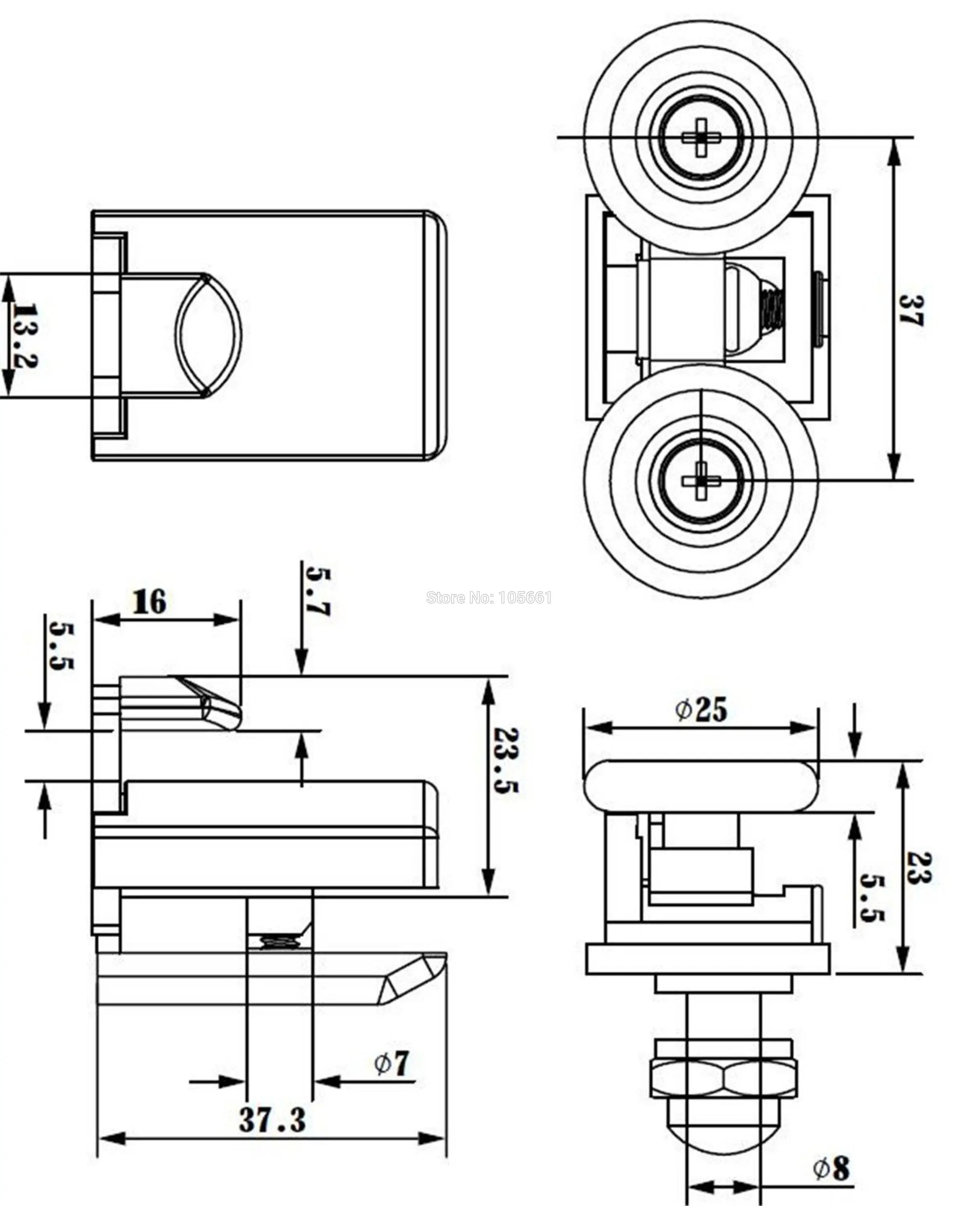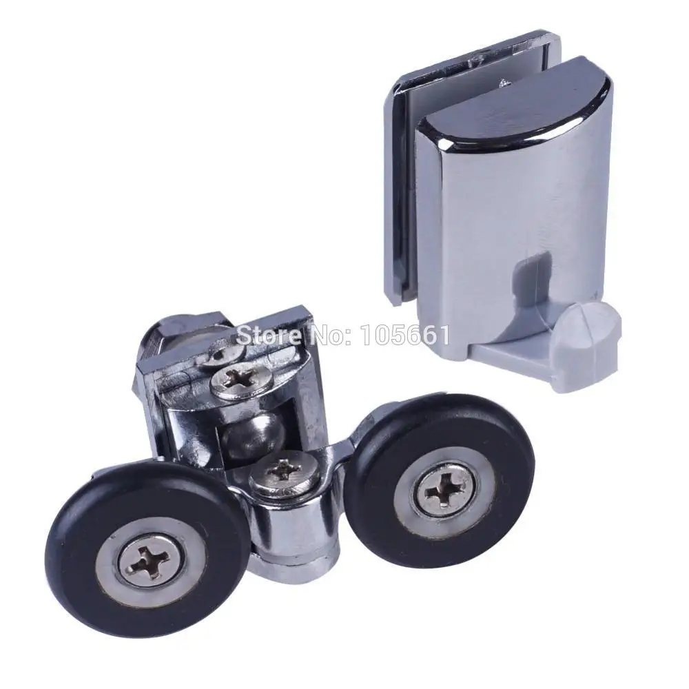 Материал: цинковый сплав Стеклянное отверстие: 8-10 мм можно использовать 2x двойные верхние ролики и 2x нижние Пружинные крючки Колесо диаметром 22 мм или 25 м толщиной стекла 5-6 мм Запасной ролик и крючки для душевой двери asy Glide