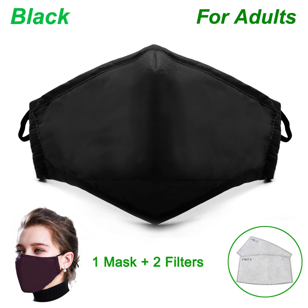 Черная хлопковая маска Tcare для лица, маска против пыли PM2.5, маска для рта с фильтром из активированного угля, стирающаяся маска многоразовая