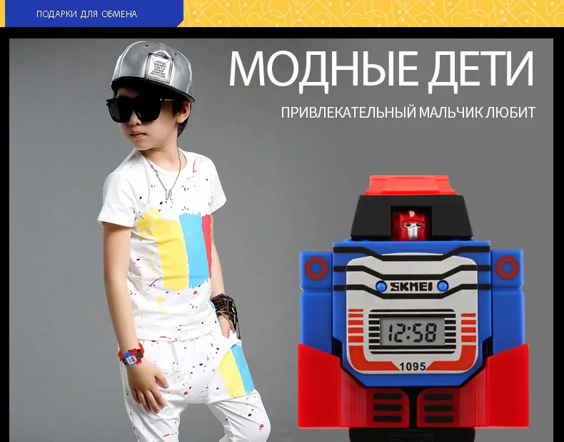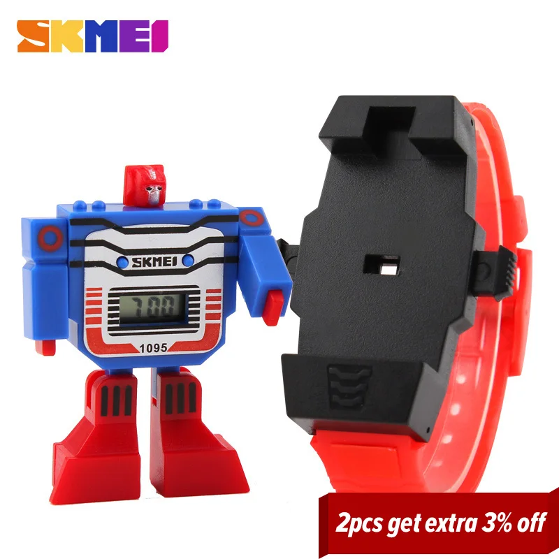 SKMEI дети светодиодный цифровой детей смотреть мультфильм спортивные часы Relogio робот преобразования игрушки мальчики Наручные часы 1095