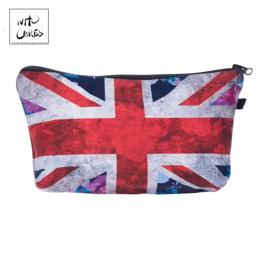 Модные косметички Who Cares с британским флагом и 3D-принтом, дамская сумочка для путешествий, женская косметичка