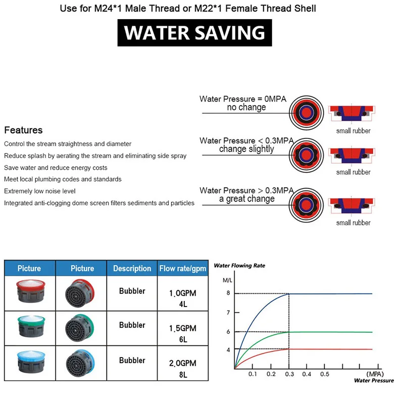 Экономичный аэратор для крана WASOURLF, 2 шт., 6 л, M22, наружная резьба, аксессуары для кухонного смесителя