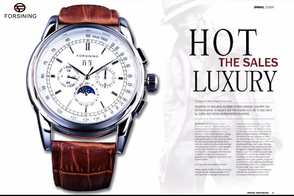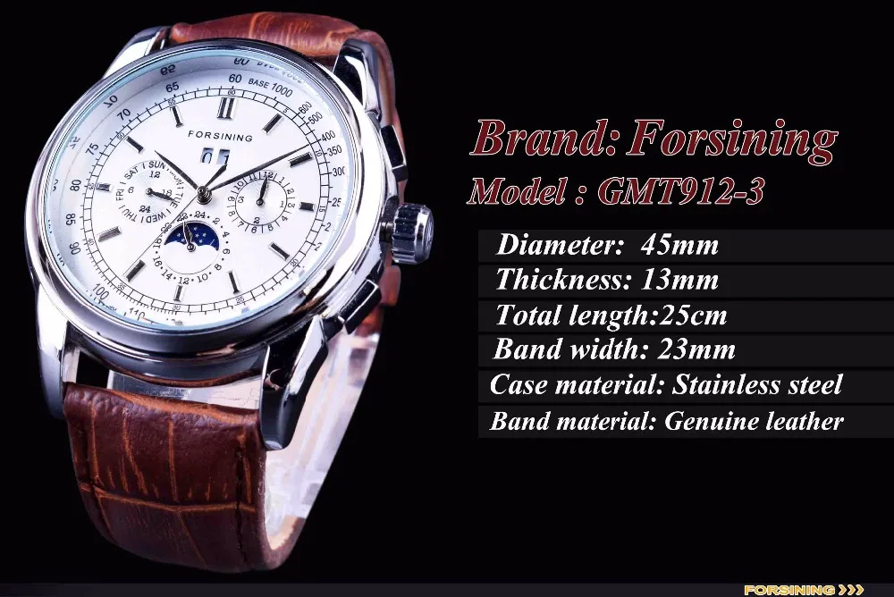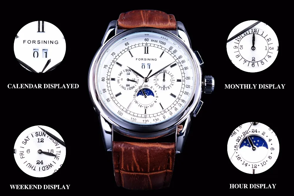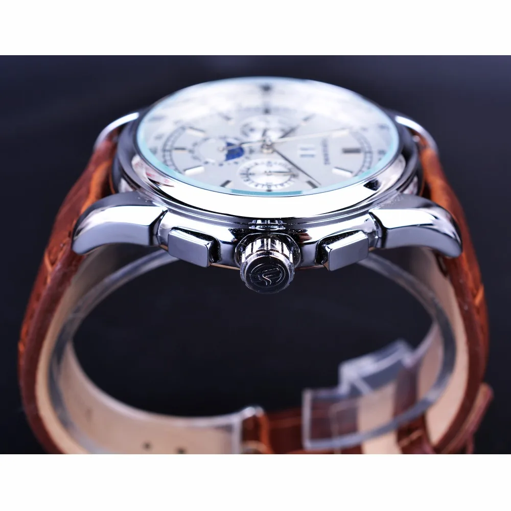 Forsining Мужские часы с лунным календарем, коричневые кожаные часы...