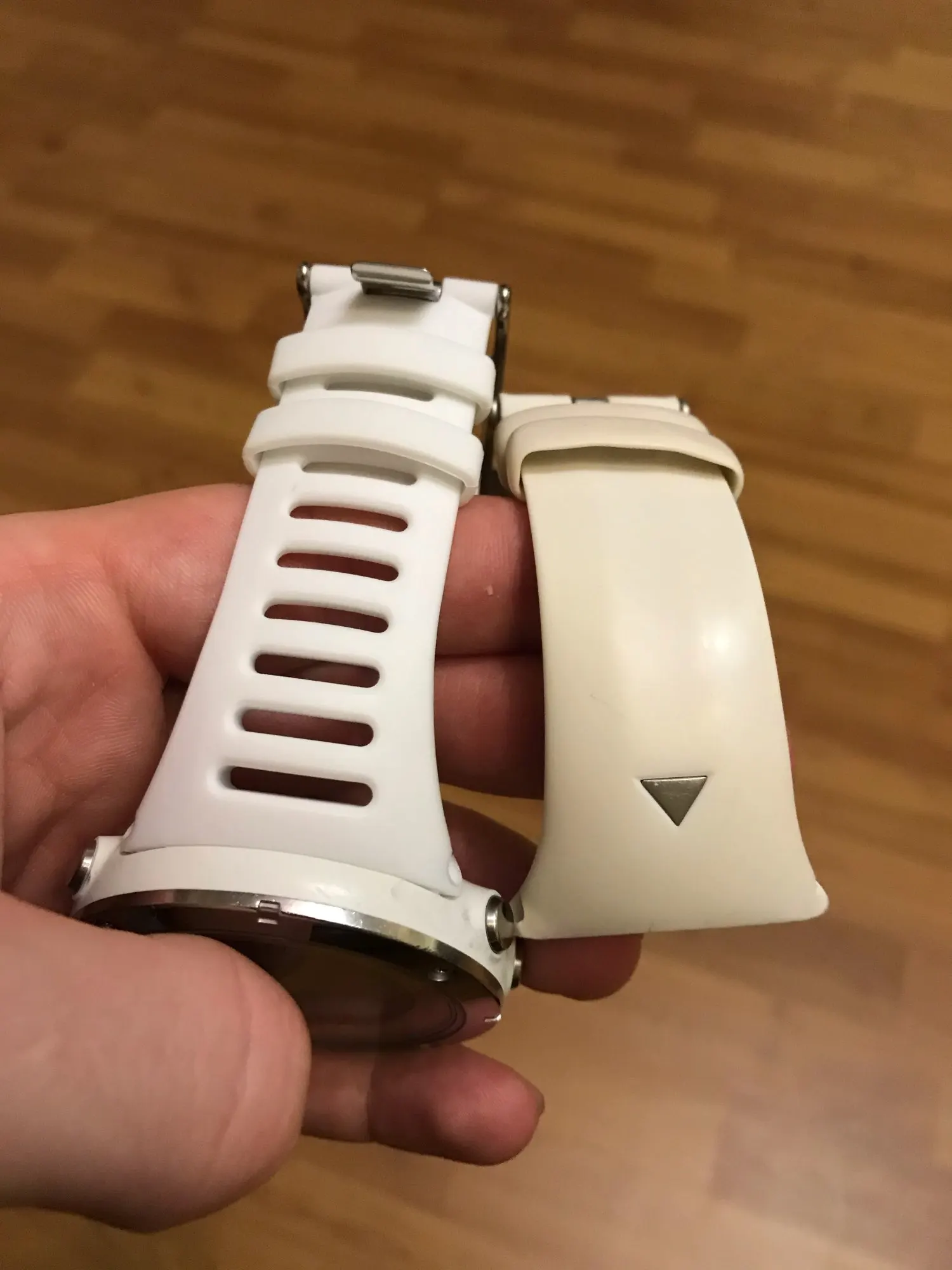 Качество очень плохое, по цвету довольно сильно отличается от белых суунто, цвет дешевый ярко белый, форма не правильная пришлось затягивать силой, везде зазоры и щели, материал грубый жесткий пластик, тренчики хлипкие, вот вот сломаются при нажатии, ремень фиксируют грубо в притык, что потом снять невозможно, брали относительно дорого, у других продавцов можно взять в два раза дешевле, думали будет получше с качеством, но увы и ах.. позже дополню отзыв