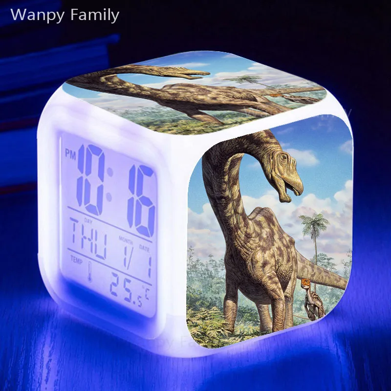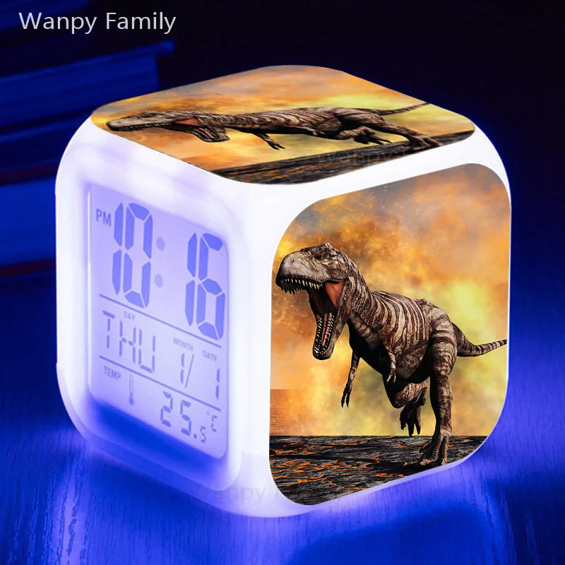 Юрский период динозавр Будильник 7 цветов светящийся светодиодный ц...