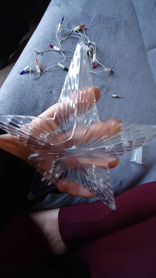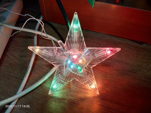 Звезда пришла с трещинами на корпусе. Пластик тонкий, хрупкий. Просто светится.
