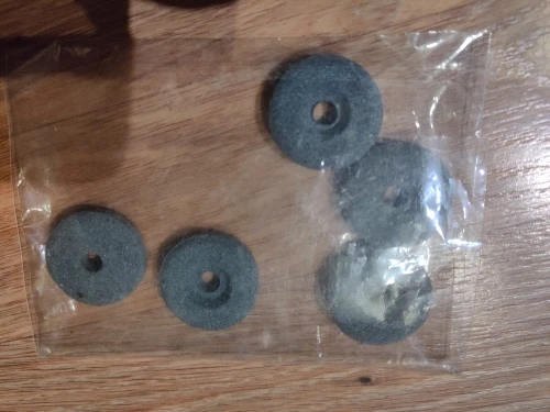 Пришли быстро. Центральные отверстия на 4шт немного больше чем нужно. Один подошёл, но отверстие не по центру, очень сильная вибрация, со временем конечно уйдёт, если точилка не рассыпится. С остальными буду думать, подложку чего нибудь.