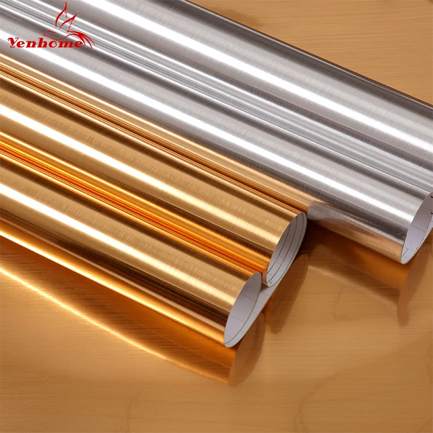 Водостойкие блестящие наклейки на стену из ПВХ, серебристые и золотые щетки , самоклеящиеся обои столешница, кухонный шкаф, украшение дома, пленка