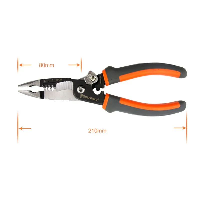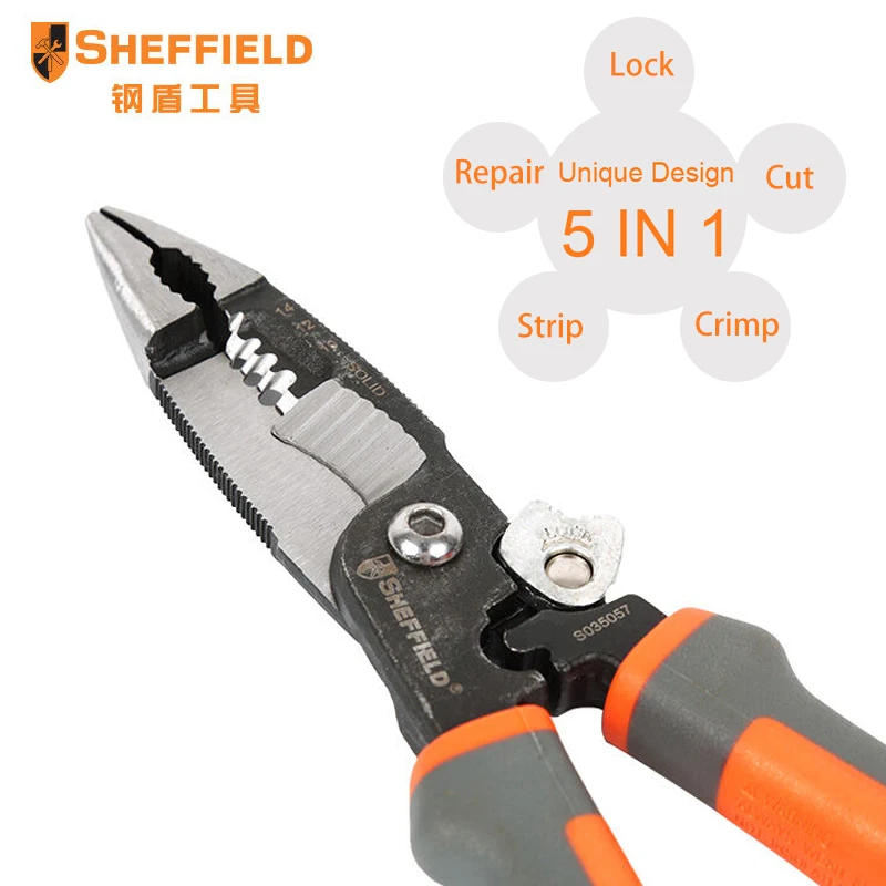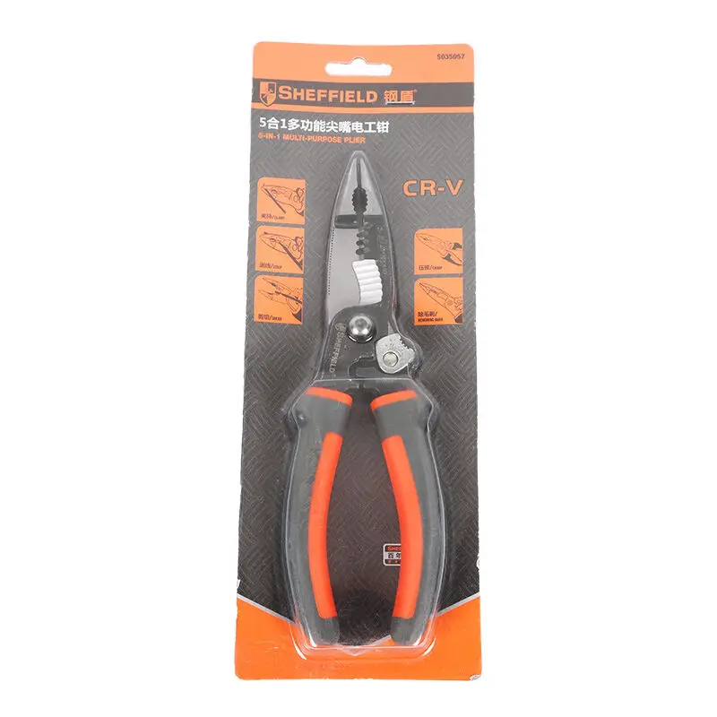 Щипцы SHEFFIELD, 8 Дюймов, 5 в 1, многофункциональные плоскогубцы для электрика, кусачки для зачистки проводов, обжимные плоскогубцы S035057