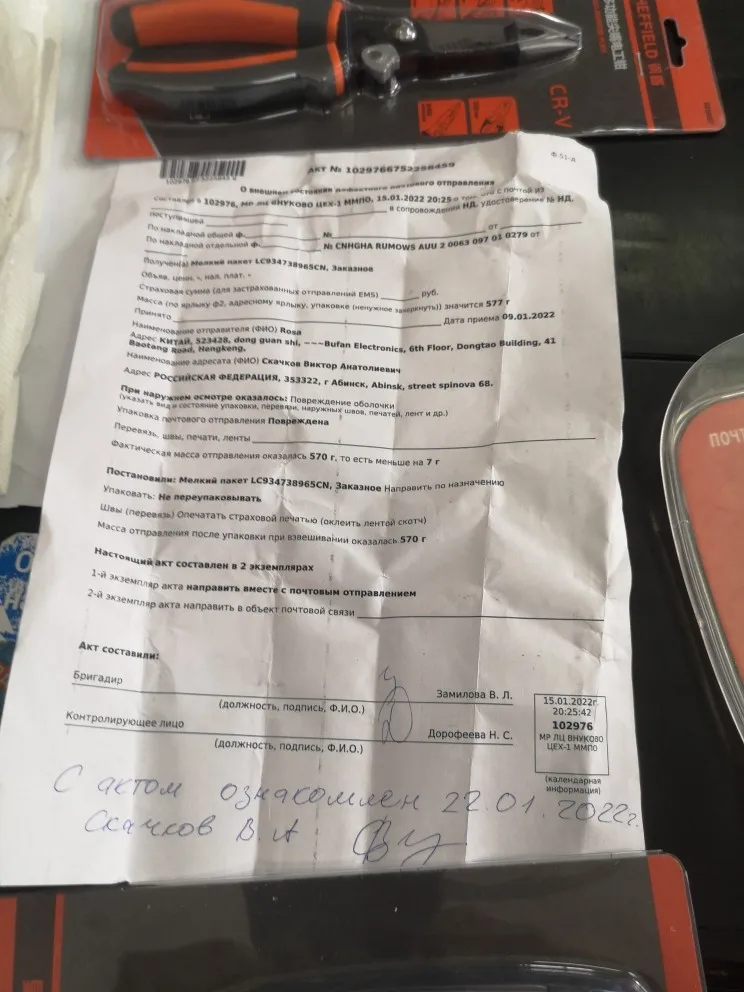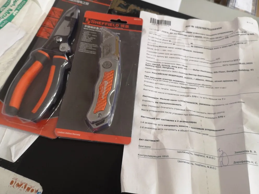Здравствуйте, в пакете который я получил, был только нож и лезвия к ножу, а Щипцы SHEFFIELD, 8 Дюймов, 5 в 1, многофункциональные плоскогубцы для электрика, кусачки для зачистки проводов, обжимные плоскогубцы, их нет, где они, Вы не прислали их, если их не пришлете, верните деньги 1 696,90 руб.