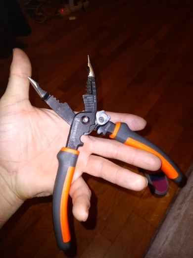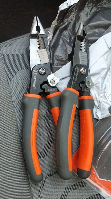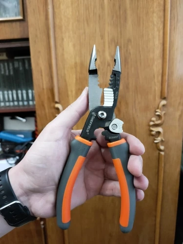 Пассатижи дюймовые. Соответственно под метрические провода подходят не очень. У меня нормально зачистился только одножильный провод на 2,5. 1,5 тяжело идет. Большой нож кабель режет хорошо. Им даже получается зачищать внешнюю изоляцию. За такую стоимость в страны с метрическими размерами лучше не брать.