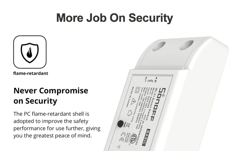 Основываясь на классическом базовом, SONOFF постоянно расширяет Категория продукта, а также улучшает и оптимизирует производительность продукта в последовательности. В конечном счете, BASICR2 с сертификацией ETL выходит.