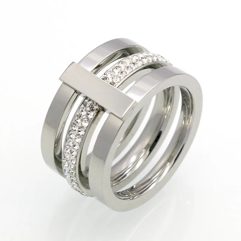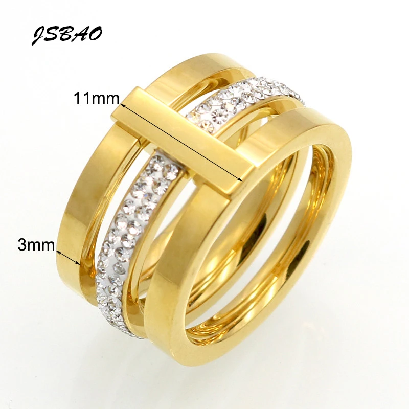 Новое поступление, трехслойное титановое кольцо JSBAO из нержавеющей стали с цирконом для мужчин и женщин, кольцо с кристаллом из циркония, оптовая продажа ювелирных изделий