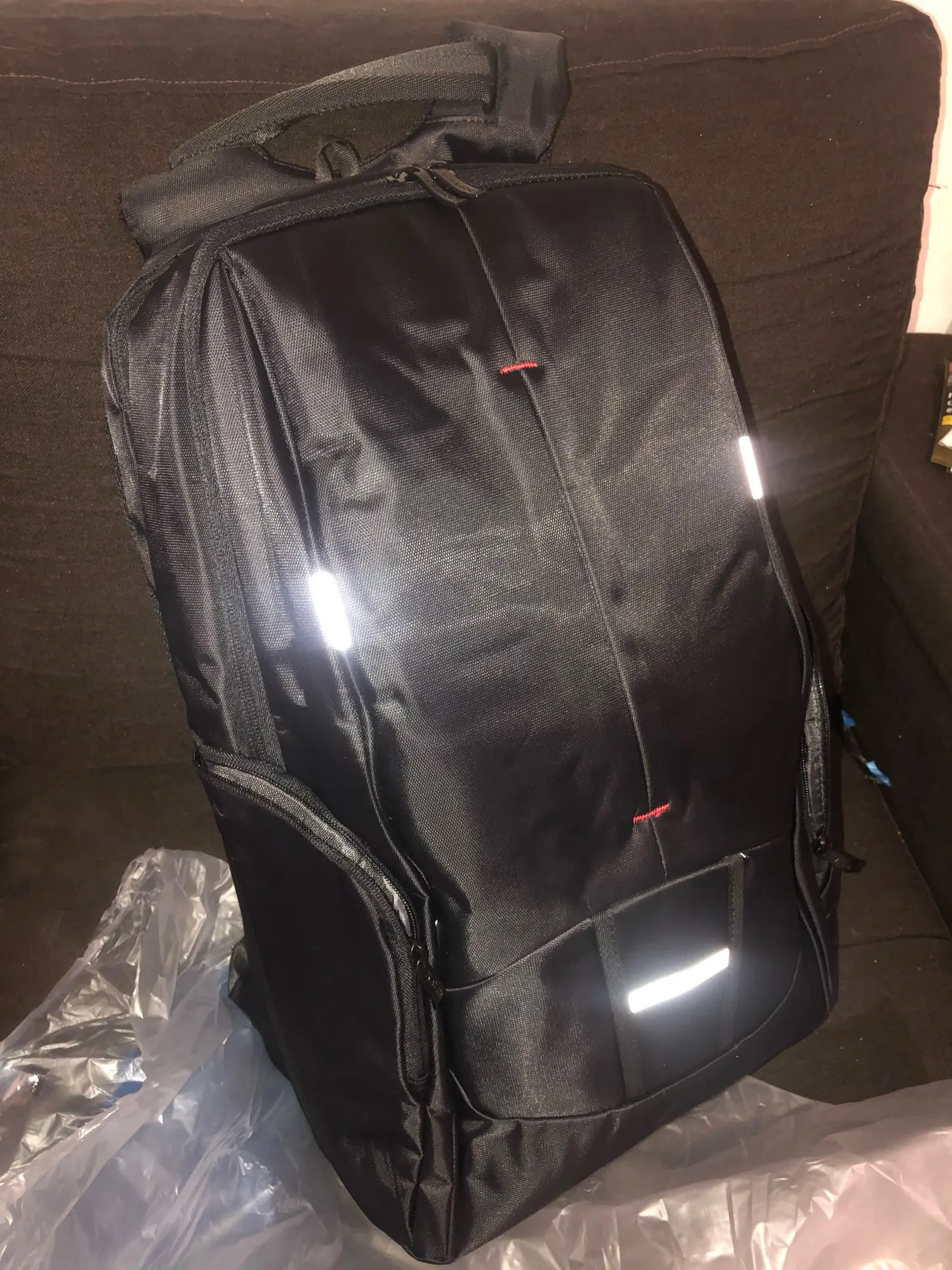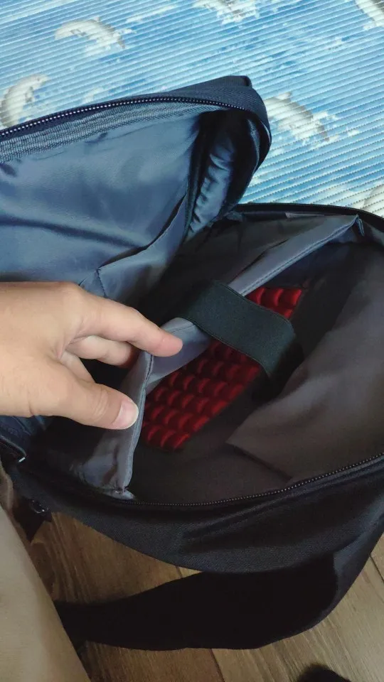 Отличный рюкзак. 17'3 дюймовый Omen вместился. Достаточно много отделений. Нитки ни где не торчат, хорошо прошит, форму держит. Единственное но это ручка на лямках, ооочень неудобно, придётся перешивать или срезать. Доставка CDEK.