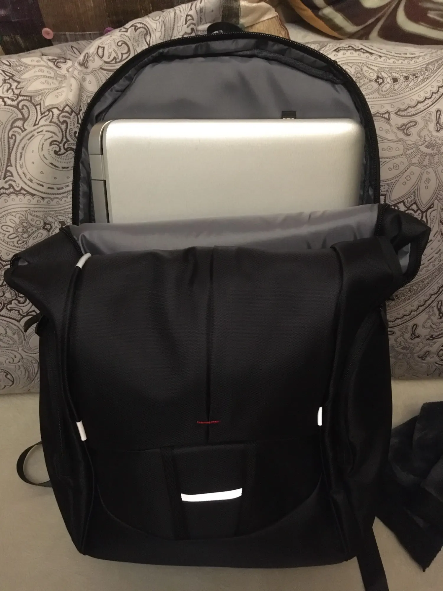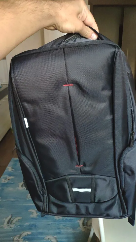 рюкзак очень хорошего качества, ровные строчки, качества материала идеальное, единственное, видимо при транспортировке,как только открыли посылку отломался один замочек, остался ползунок только. а так рюкзак суперский, много карманов, в одном из них есть провод для зарядки