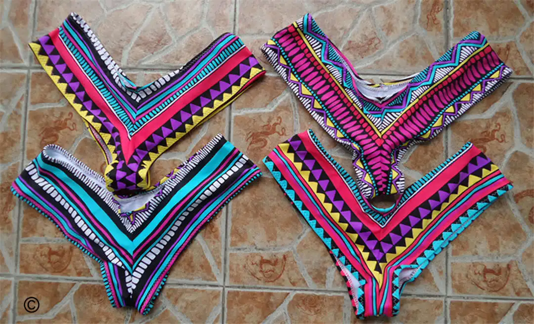 Внимание: из-за разных мест разреза ткани реальный рисунок низа каждого Бикини будет немного отличаться друг от друга.