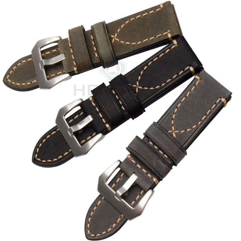 Итальянский ремешок из натуральной кожи, мужской ремешок из воловьей кожи, толстый ремешок для часов, Дамский ремешок 20 мм 22 мм 24 мм, браслет с металлической пряжкой Для Panerai