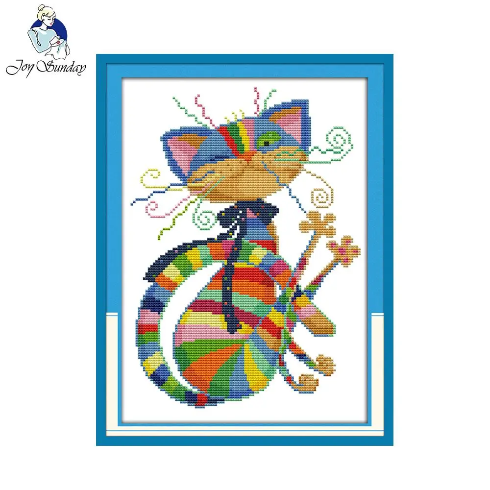 Набор для вышивки крестиком Joy Sunday сделай сам, домашний декор для сада, коттеджа, красочная вышивка крестиком с кошкой