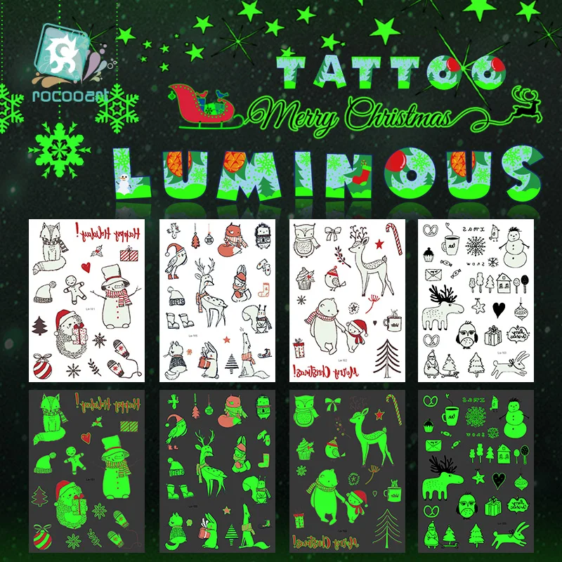 Горячие 2019 светящиеся боди-арт тату на Рождество, светящиеся в темноте краски, временные флэш-татуировки, наклейки Taty