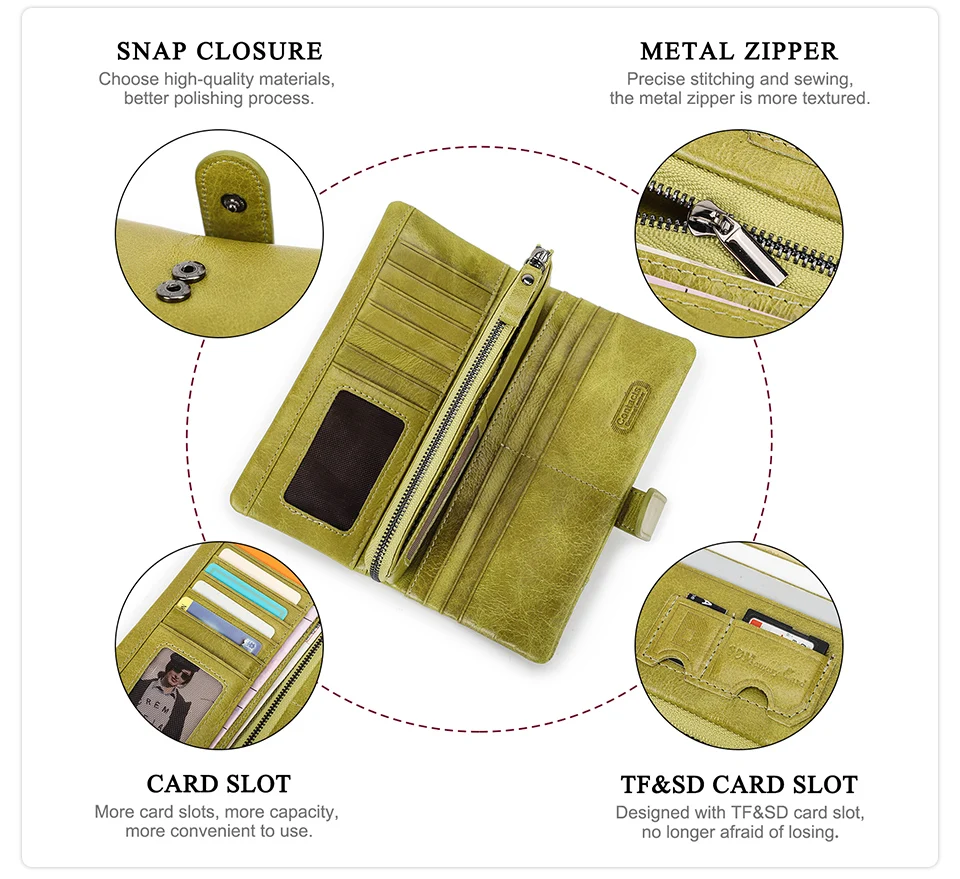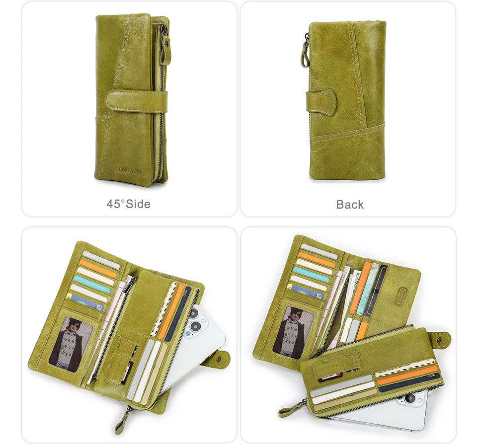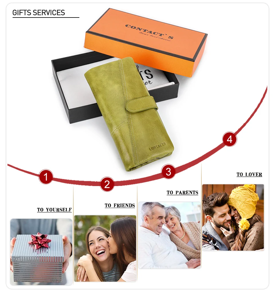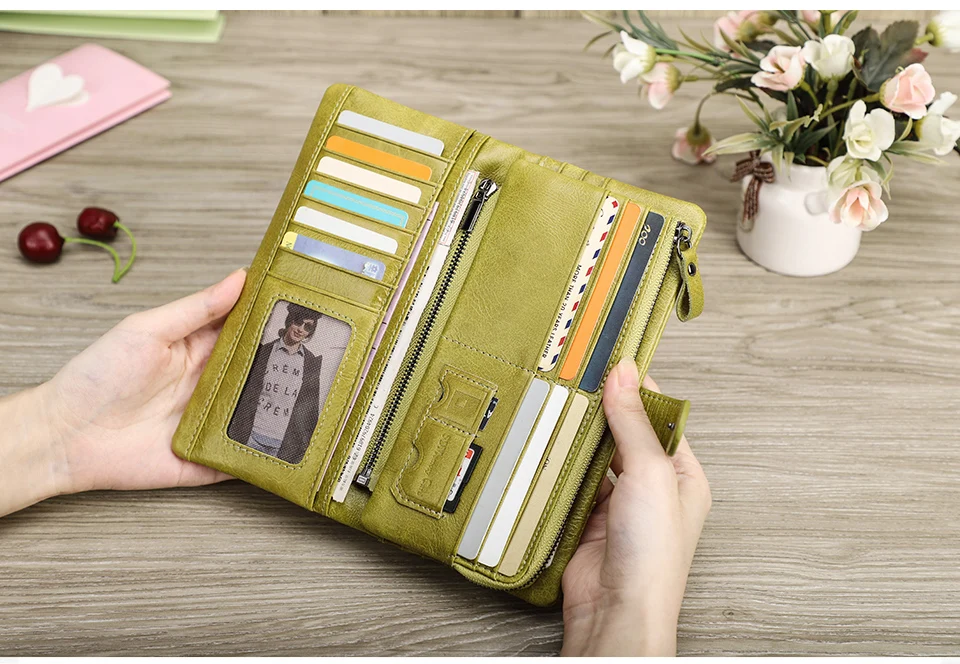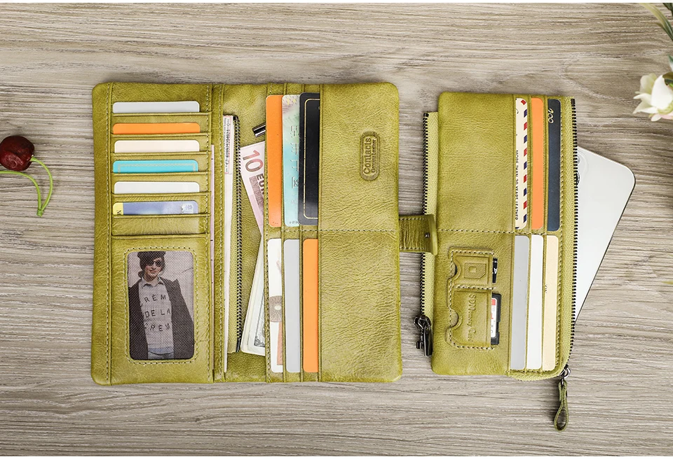 Женские кошельки Contact's, брендовый дизайн, высококачественный кошелек из натуральной кожи, женский модный длинный кошелек на защелке по долларовой цене, держатель для карт