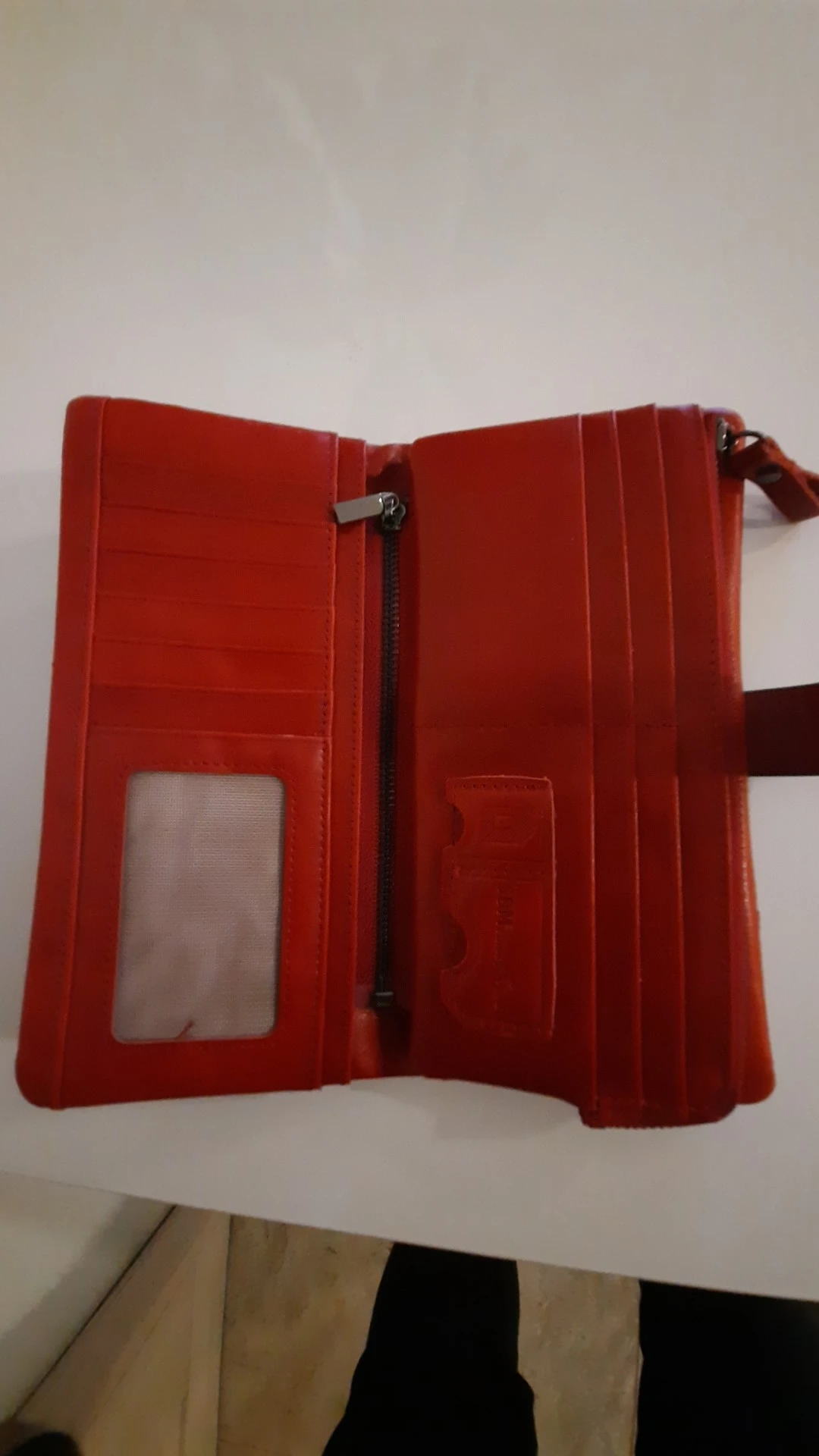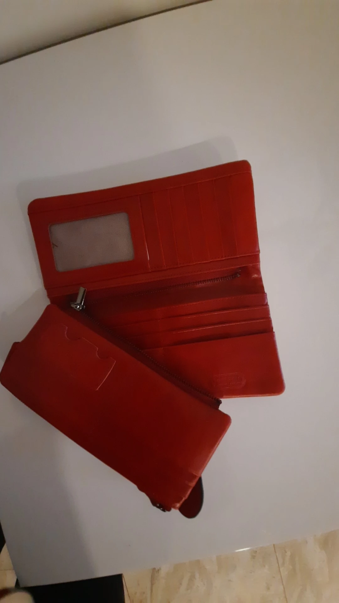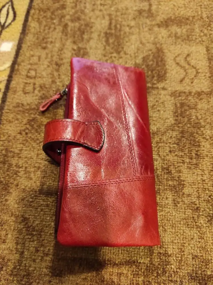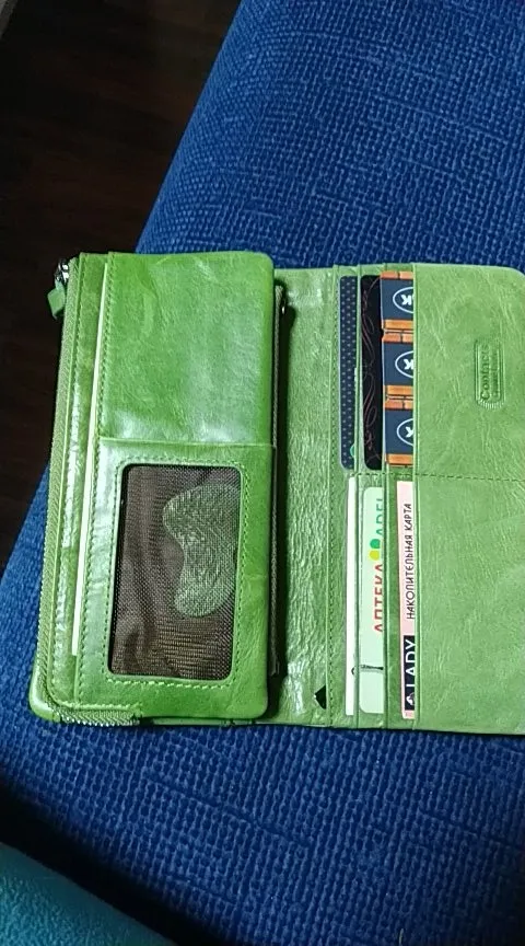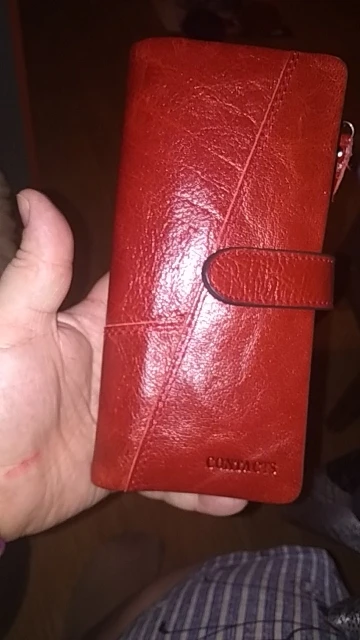 Кошелёк очень классный, вместительный, куча отделений, в том числе и под карты. Единственное, цвет не красный, а красно-коричневый