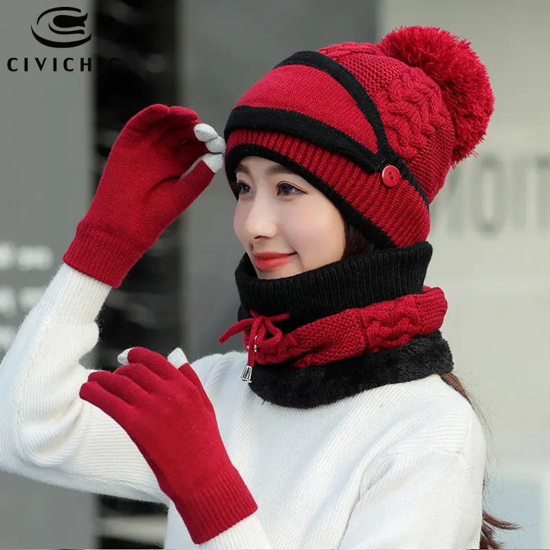 Набор из шапки, шарфа и перчаток женский на флисе, зимний, вязаный, теплый, с маской, 4шт., SH128
