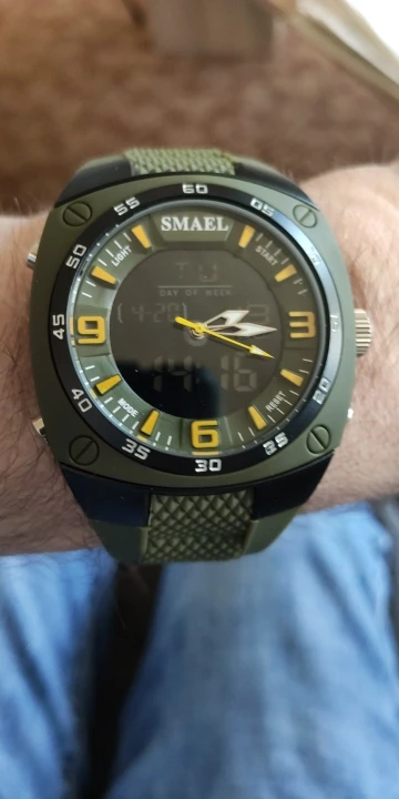 Часы SMAEL Мужские кварцевые, аналоговые цифровые водонепроницаемые светодиодные спортивные в стиле милитари, с автоматической датой