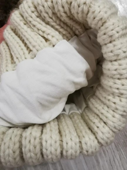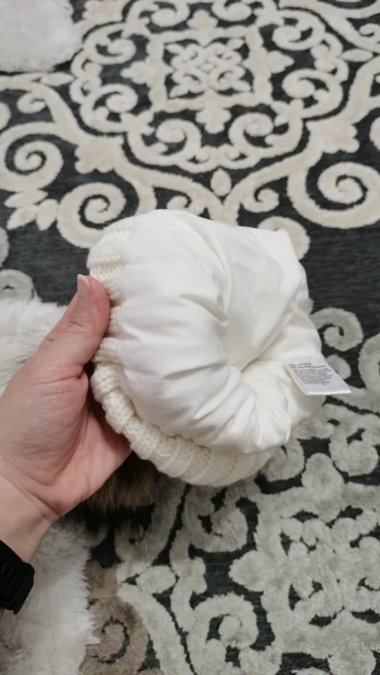 шапка не плохая,на тёплую зиму,пумпон пушистый,но минус,то что маленькая,сидит в обтяжку,а не так как на картинке и прислали вместо белой,бежевую
