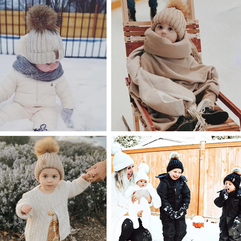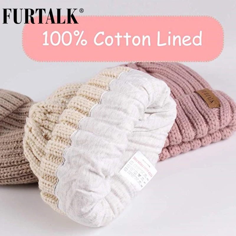 Детская шапка FURTALK, зимняя шапка для мальчиков и девочек 1-10 лет, с помпоном из меха, вязаная теплая шапка-бини, 2019