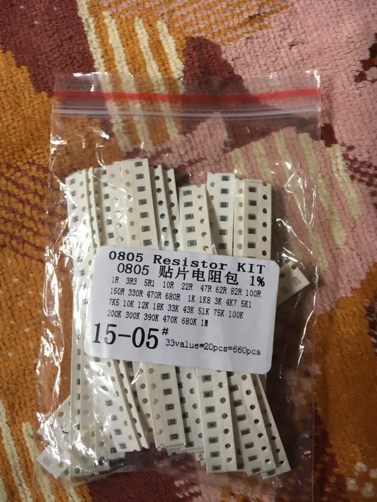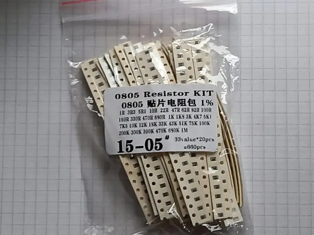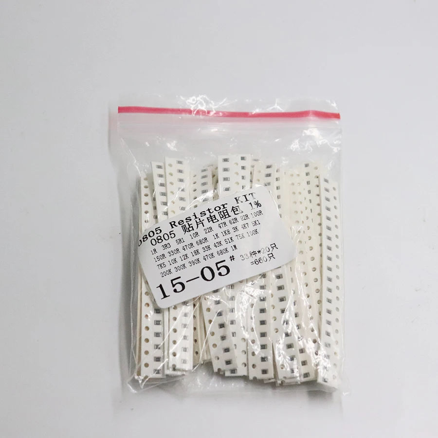 Набор резисторов 0805 SMD в ассортименте, 1 Ом-1 м ом, 1% 33 элемента, 20 шт. = 660 шт., набор образцов