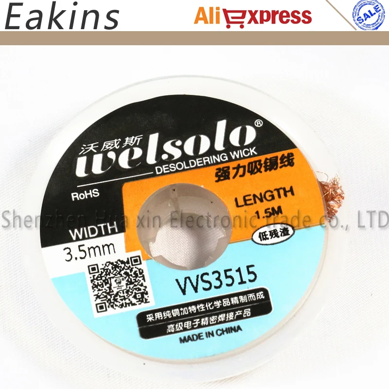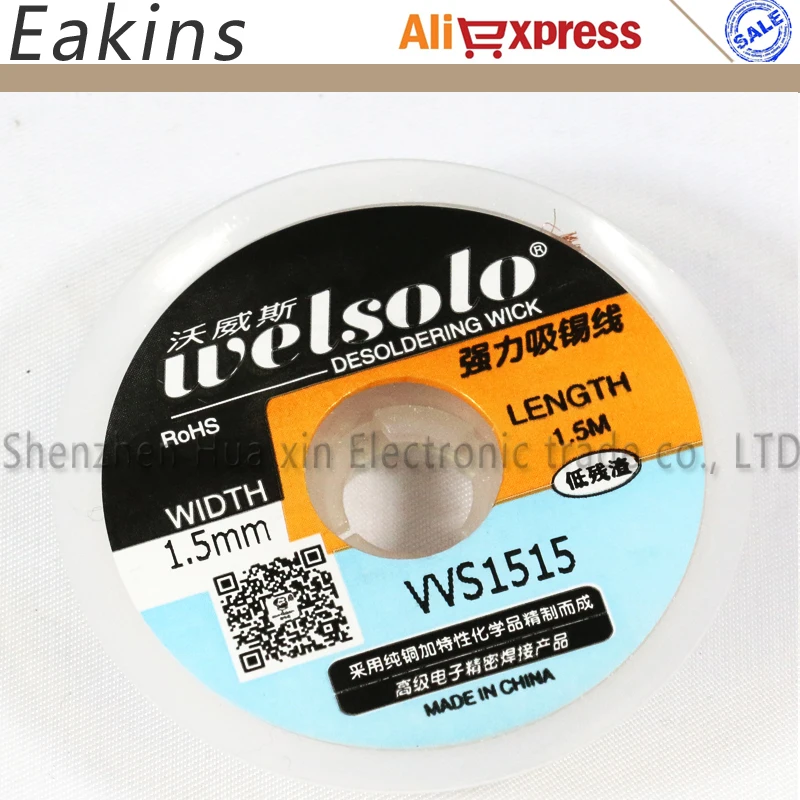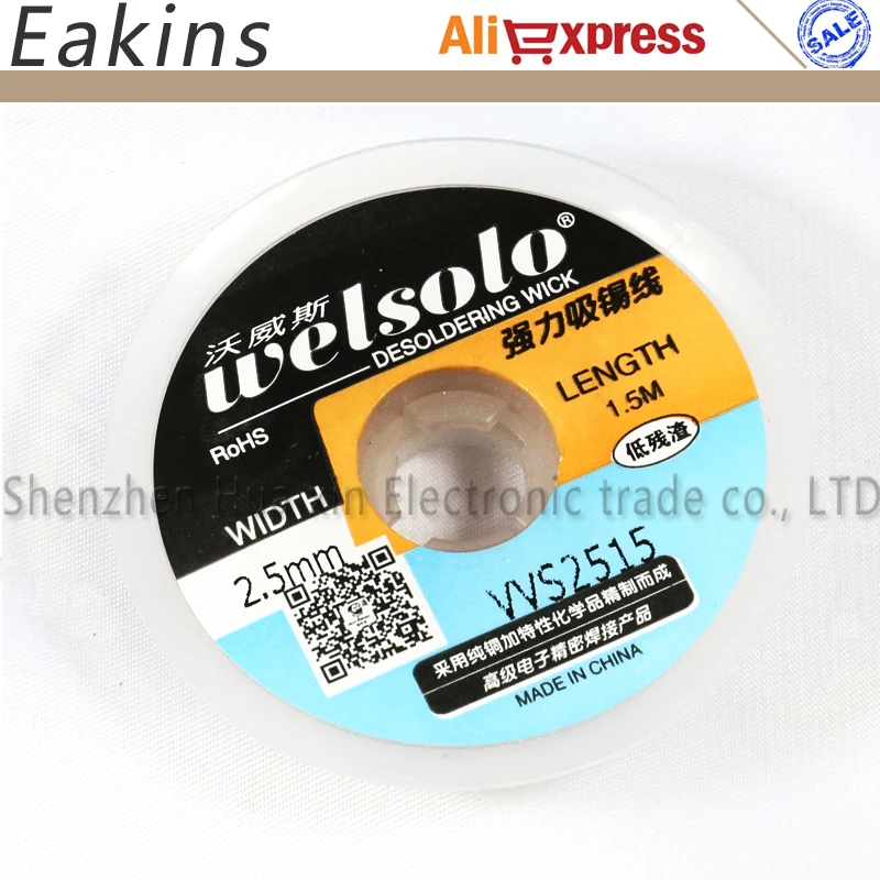 Бесплатная доставка, 5 шт./лот, WELSOLO WS1515, демонтажный фитиль, паяльник, аксессуар для удаления припоя, Мощное всасывание олова