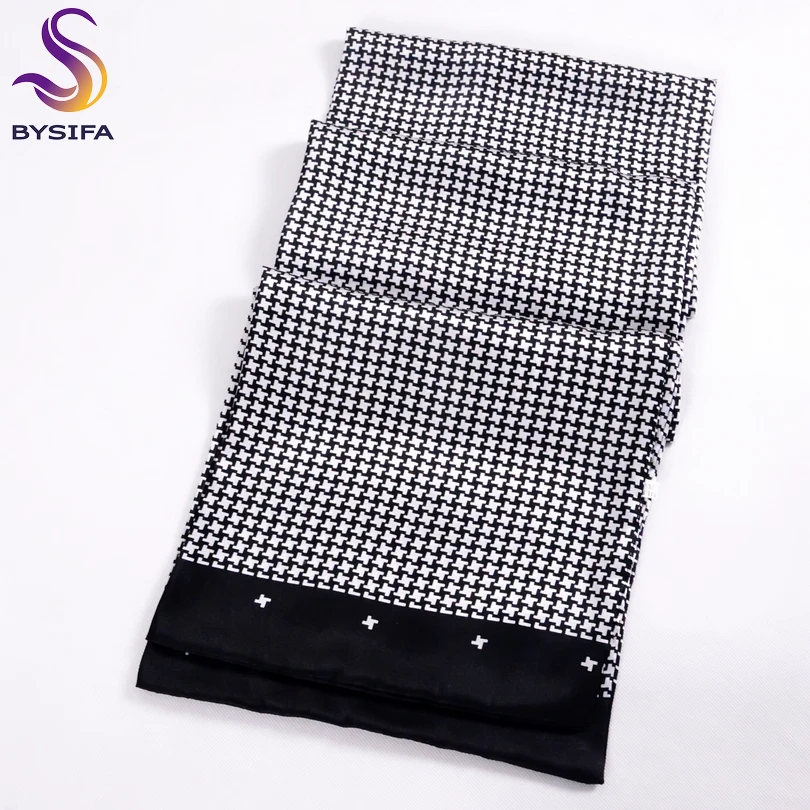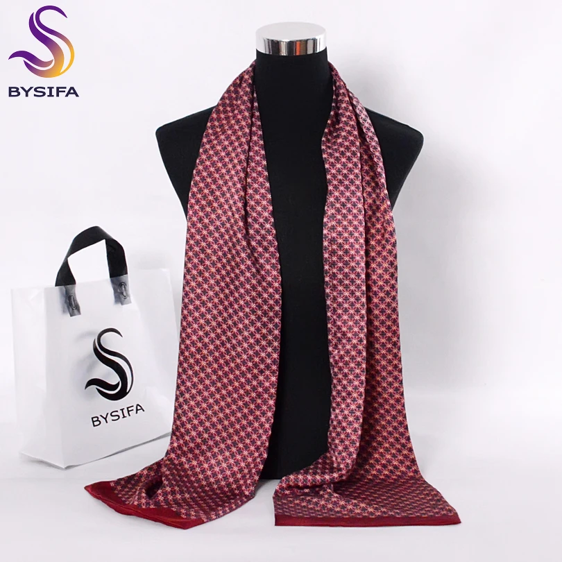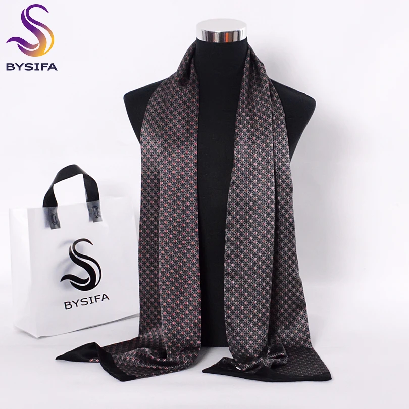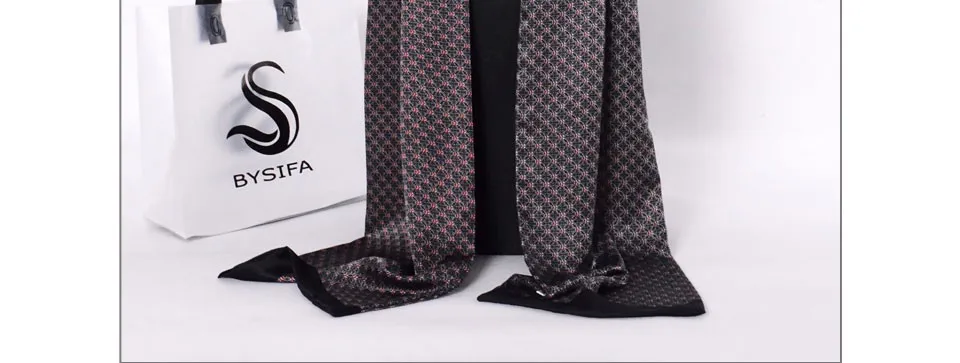 Мужской шарф с цветочным узором BYSIFA, черный или красный длинный шарф из чистого шелка, шарф, зимний шарф с цветочным узором 160*26 см