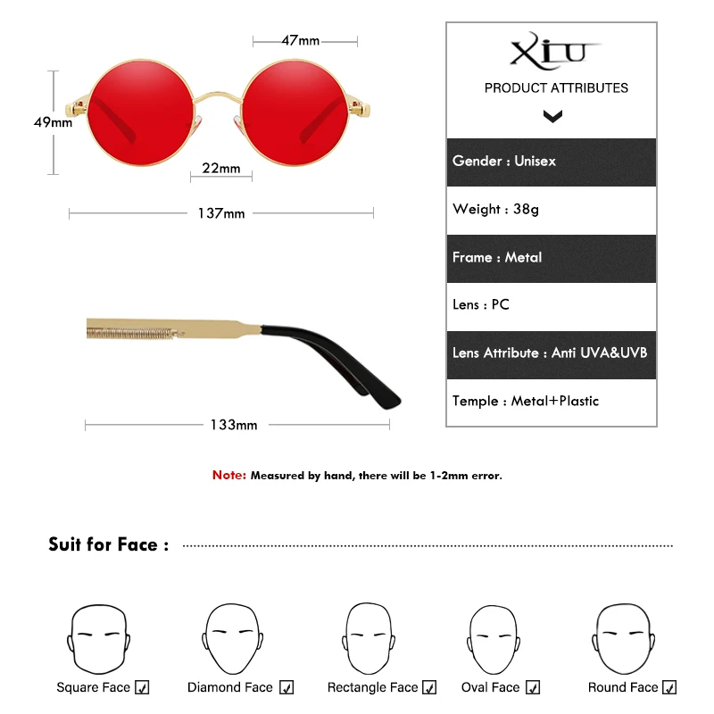 Солнцезащитные очки XIU в стиле стимпанк для мужчин и женщин UV-400