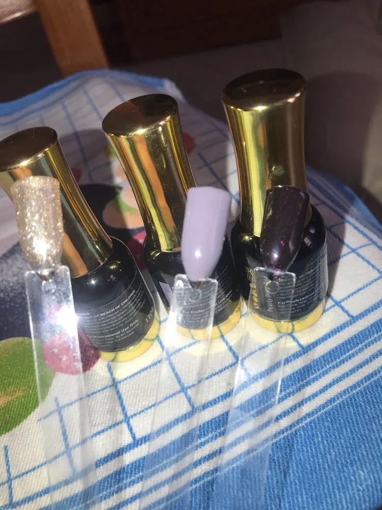 Лаки очень понравились. Бутылочки стеклянные, полные. Покрытие на 2 раза. Золотой просто супер. Без резкого запаха. Упакованы прекрасно-каждый в индивидуальной коробочке. Ничего не пролилось. Только шли долго 15.07-12.09. Но обязательно буду ещё заказывать.