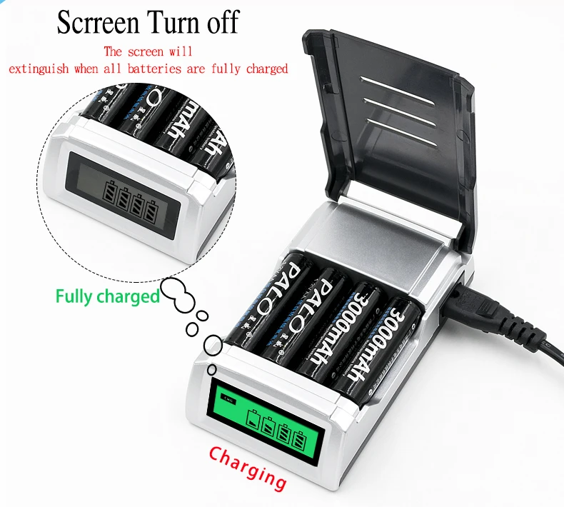Умное зарядное устройство, с ЖК-дисплеем, для никель-кадмиевых, никель-металлогидридных аккумуляторов, AA, AAA