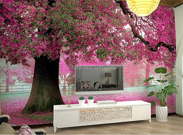 Настенные обои по индивидуальному заказу, 3D романтическое Вишневое дерево фона для телевизора, домашняя настенная бумага, декор для гостиной, дивана, настенная фреска, обои, фрески