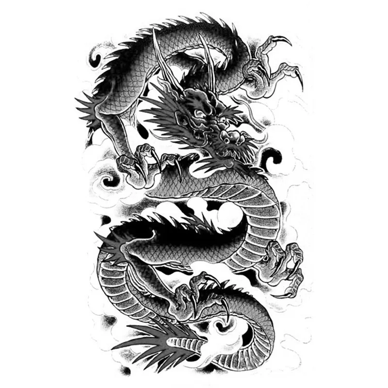 Временная татуировка SHNAPIGN с черным китайским драконом, боди-арт, 12 х20 см, флеш-Татуировка наклейка s, водостойкая поддельная Наклейка на стену хна для татуировки