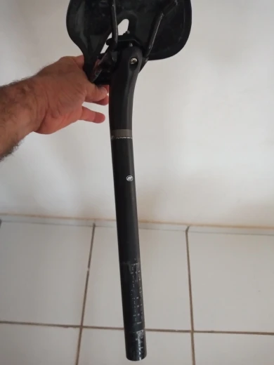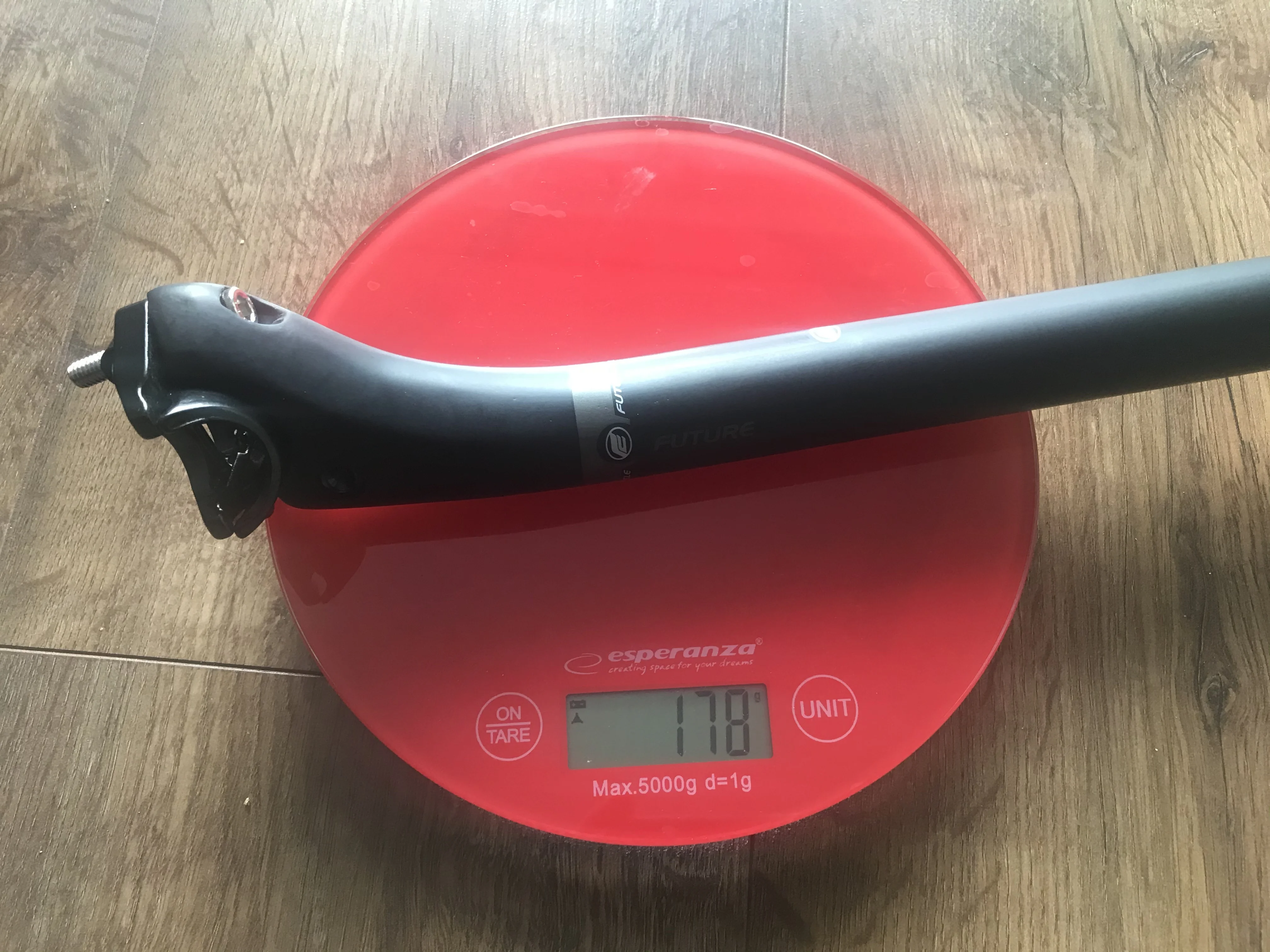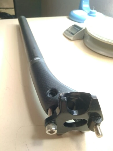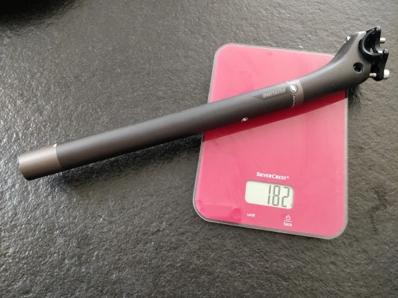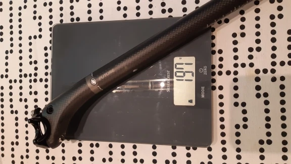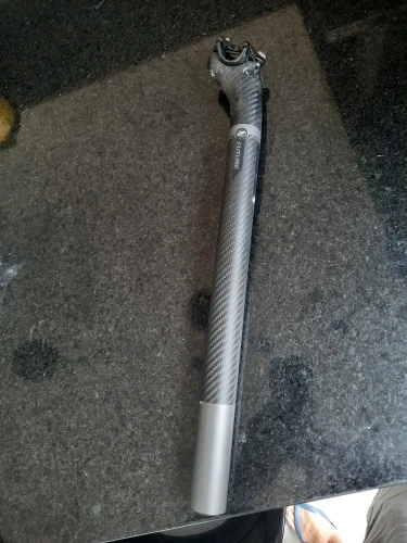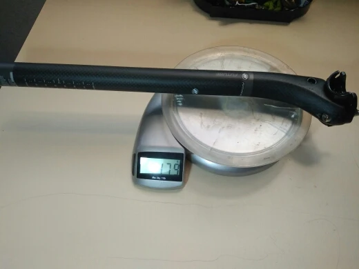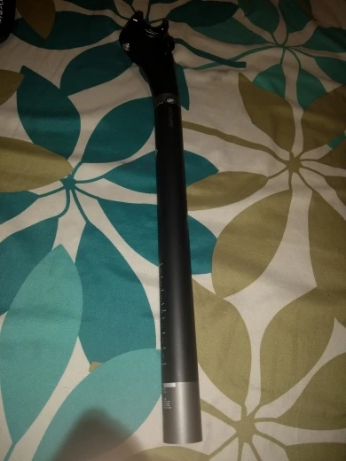 Хороший Подседельный штырь. Довольно тяжелый 195 грамм. Особенно из-за отсутствия титановых болтов и довольно тяжелой Алюминиевой Монтажной системы. Карбоновый Подседельный штырь выглядит очень красиво!
