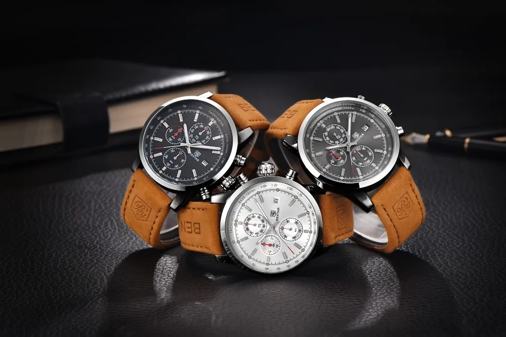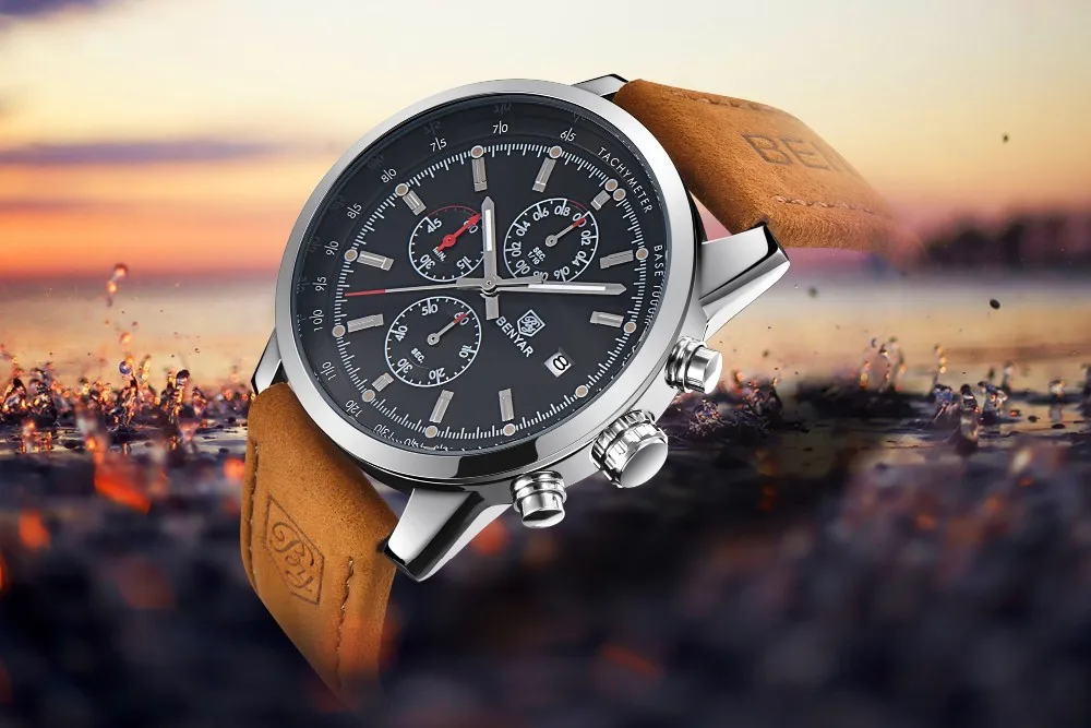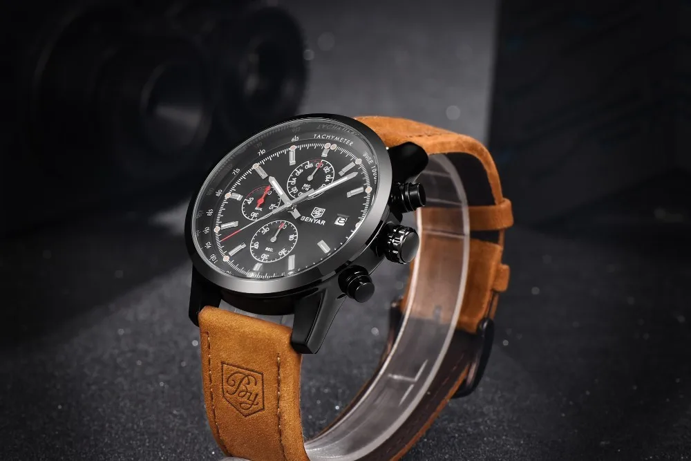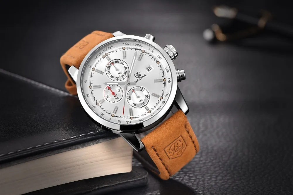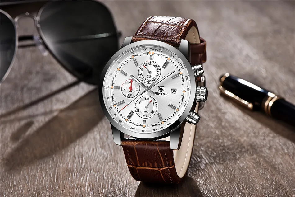 Модные спортивные часы, мужские часы с хронографом, люксовый бренд, водонепроницаемые кварцевые наручные часы из натуральной кожи с ремешком, мужские часы, relojes