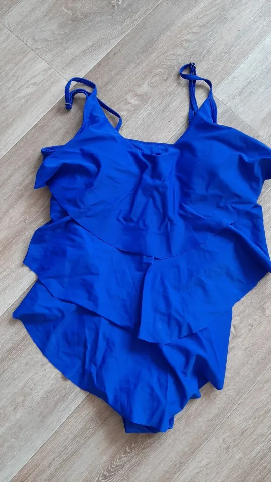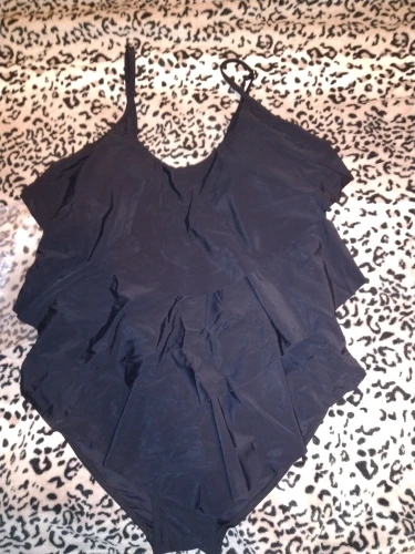 На рост 156, ОГ 100, ОБ 96 можно было брать L, немного широковат в бедрах. Чашечки маленькие, грудь не держат. В целом неплохо, оборки прикрывают проблемные зоны. Спасибо!