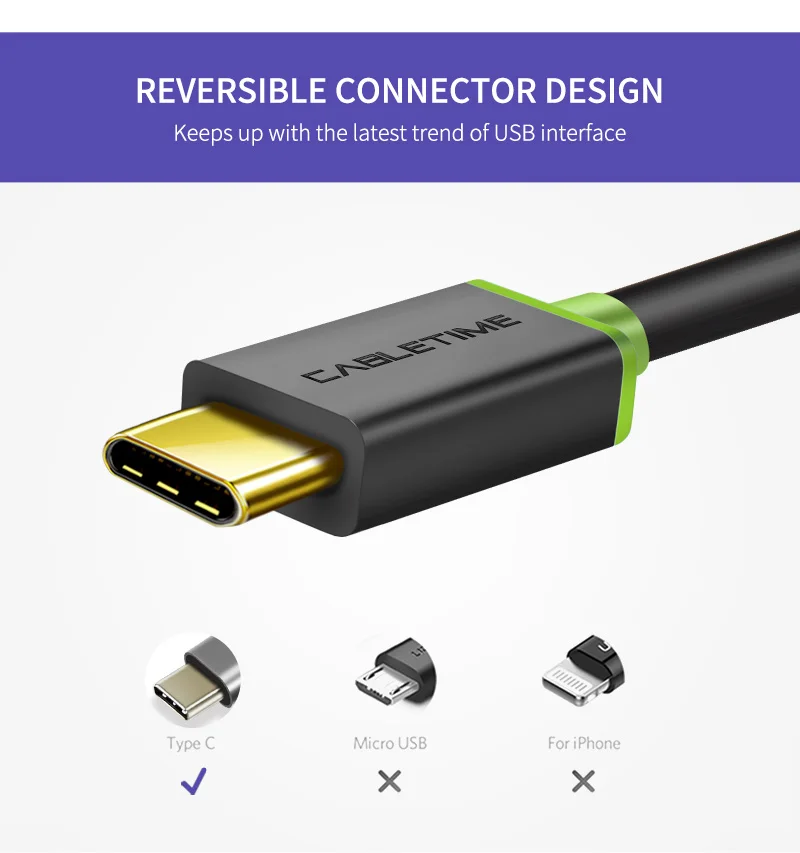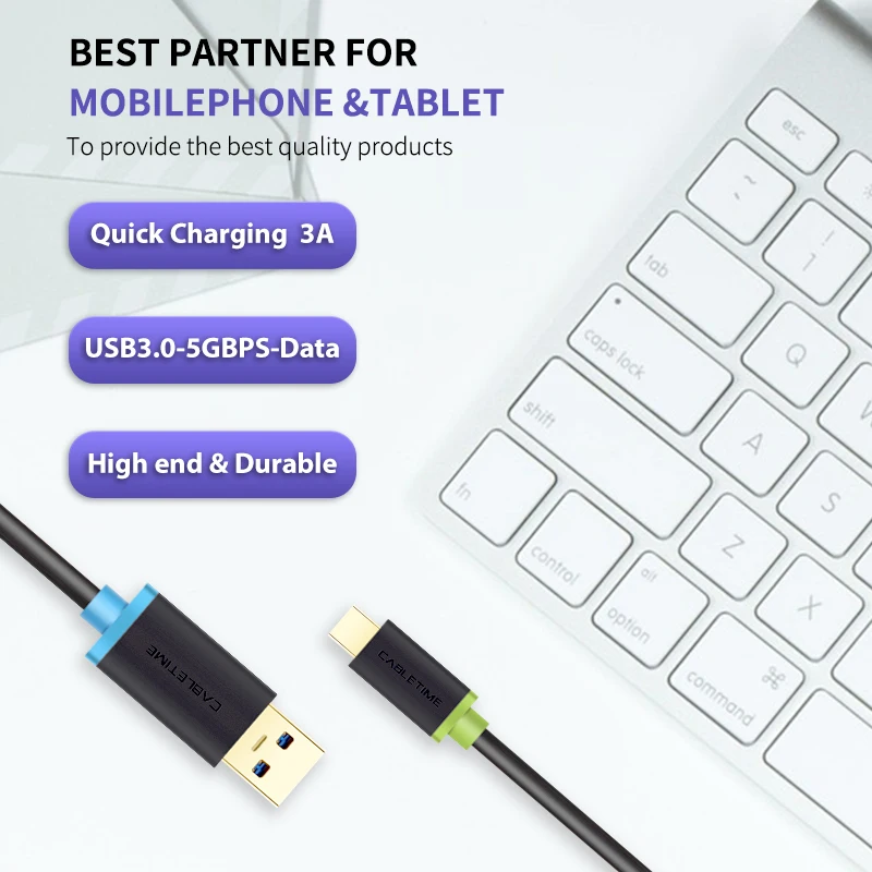 Кабель usb-c CABLETIME, 5 Гбитс, для быстрой зарядки и передачи дан...